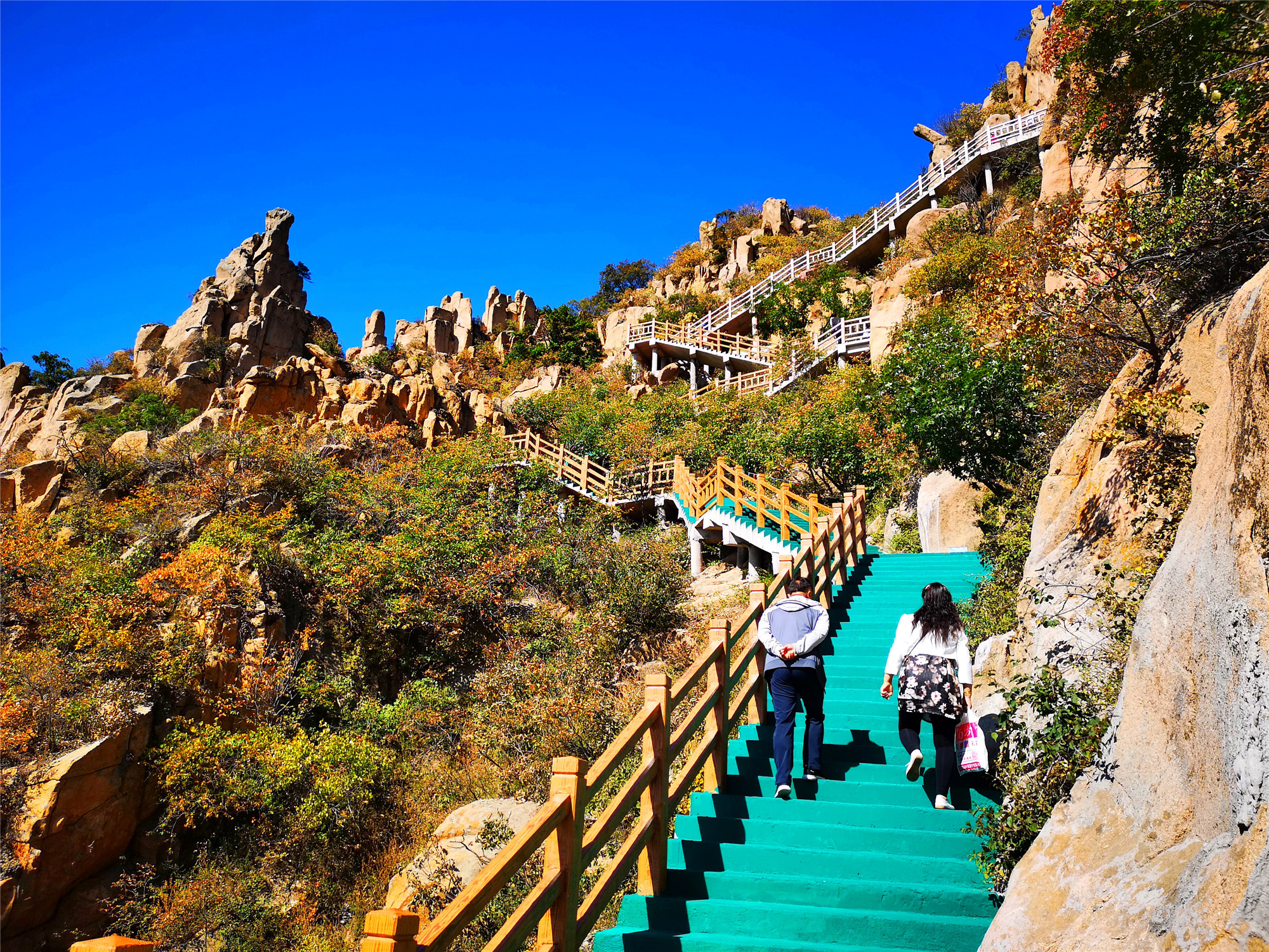 在西游仙境除了赏红叶,看的最多的就是这山中的石头,每一个都有它的故事,只有来了你才能体会。我是最喜欢大黑山的秋季,每年到了这个季节,大黑山的红叶格外耀眼,怪石林立的地方布满了红叶,站在高处望去,大黑山多姿多彩,层林尽染,在蓝天白云的衬托下妩媚动人。如若秋季不赏此景,那可真是可惜!