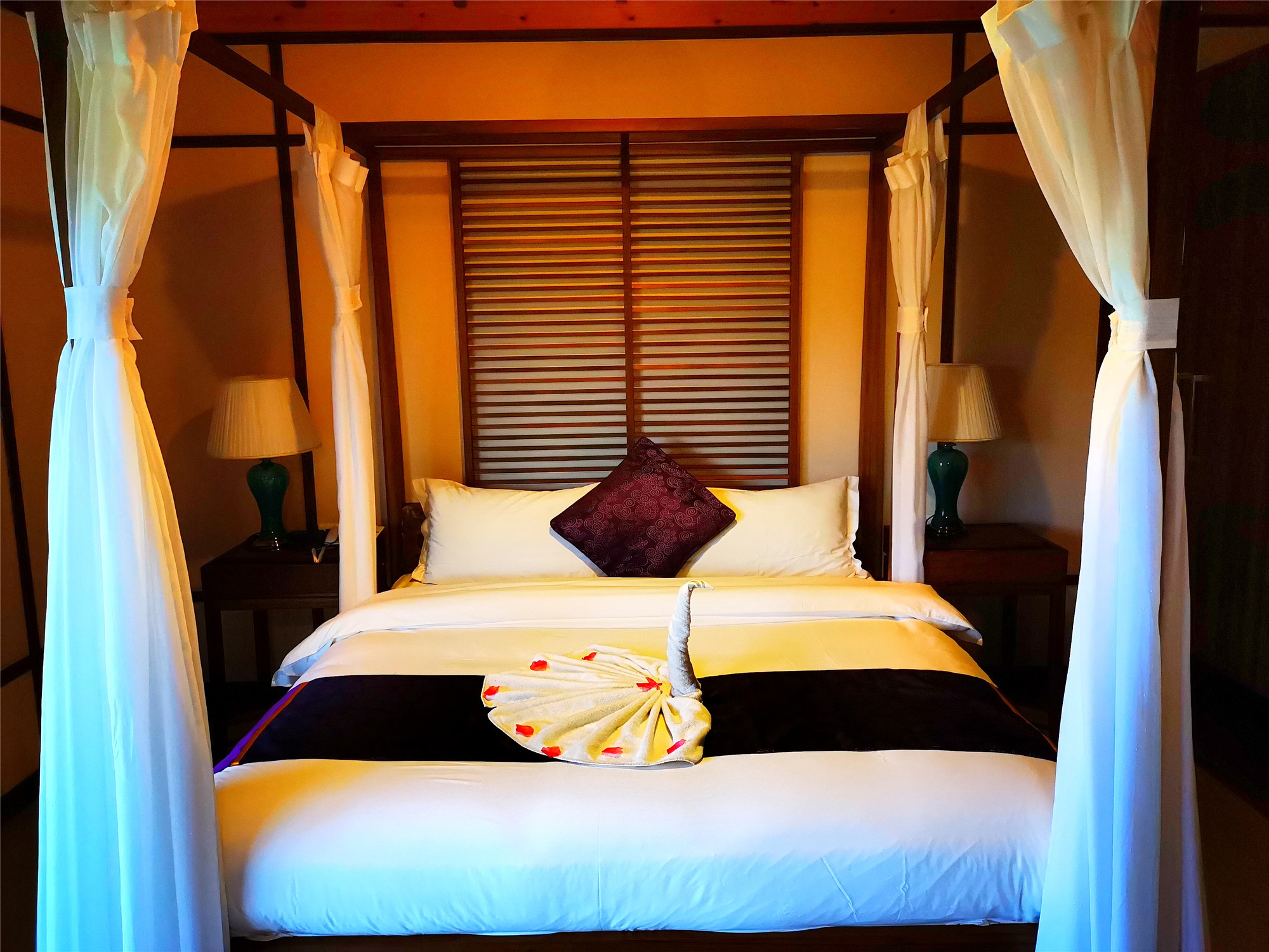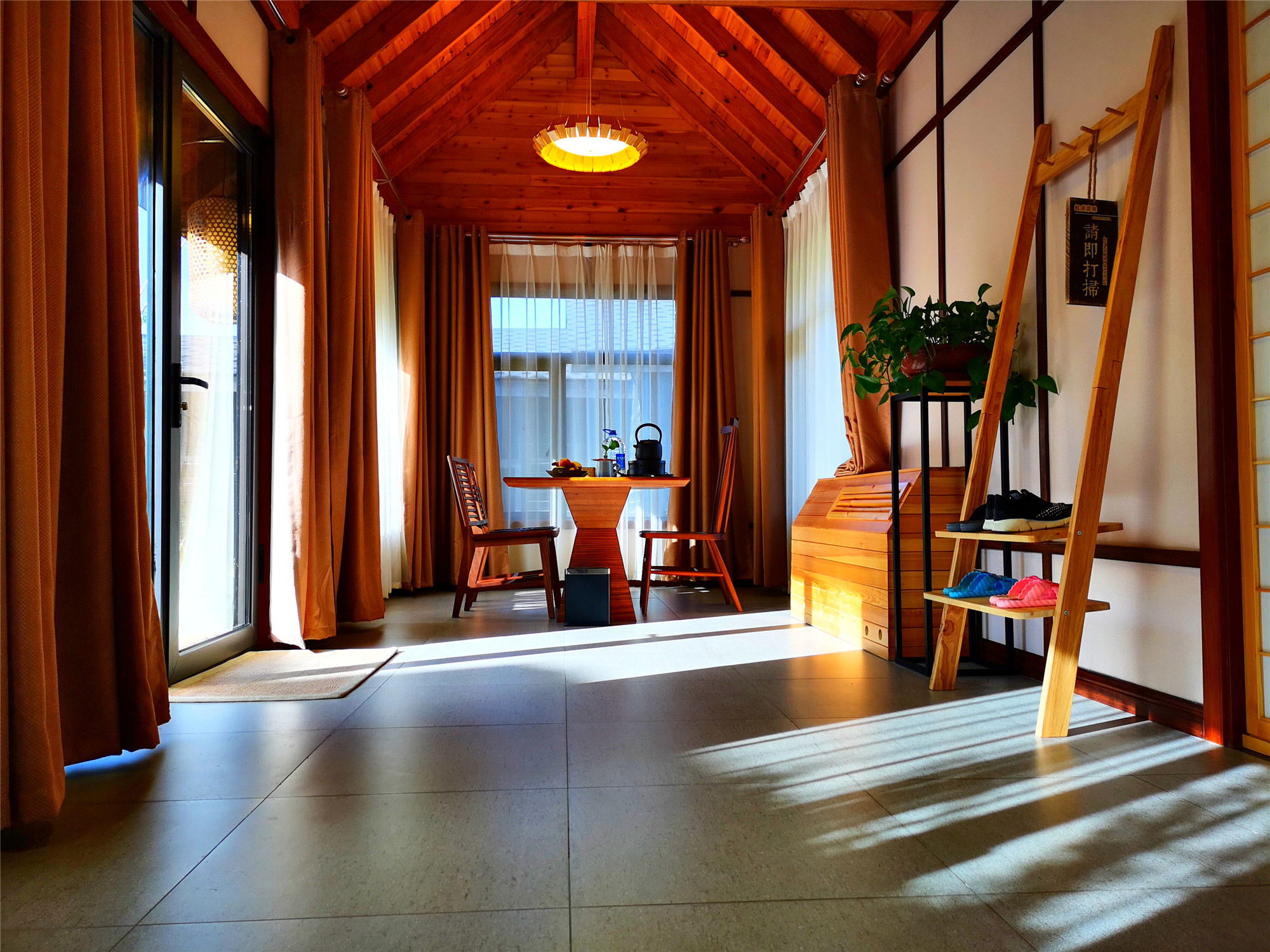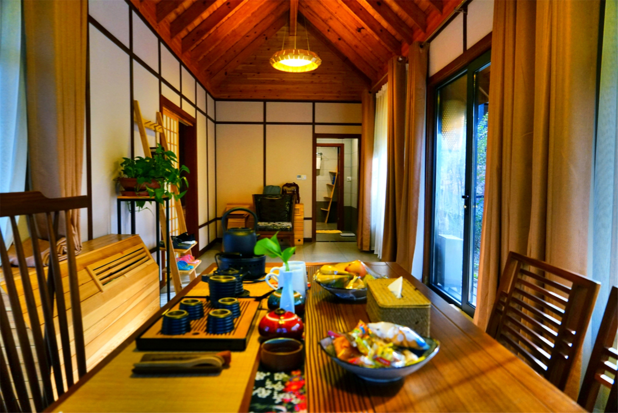 住在雅文虎山温泉虹溪诺雅,宽敞明亮的日式小木屋从早上到下午都沐浴在秋日暖阳中。一进门的地方是宽大的客厅,有茶桌茶具供客人泡茶。宽敞的大床房中连带一个客厅。别墅露台也有茶亭,临近小荷塘。残荷摇曳,蛙鸣依旧,夜晚繁星点点,微风习习。这里才是休闲度假,放松身心的绝佳之所。