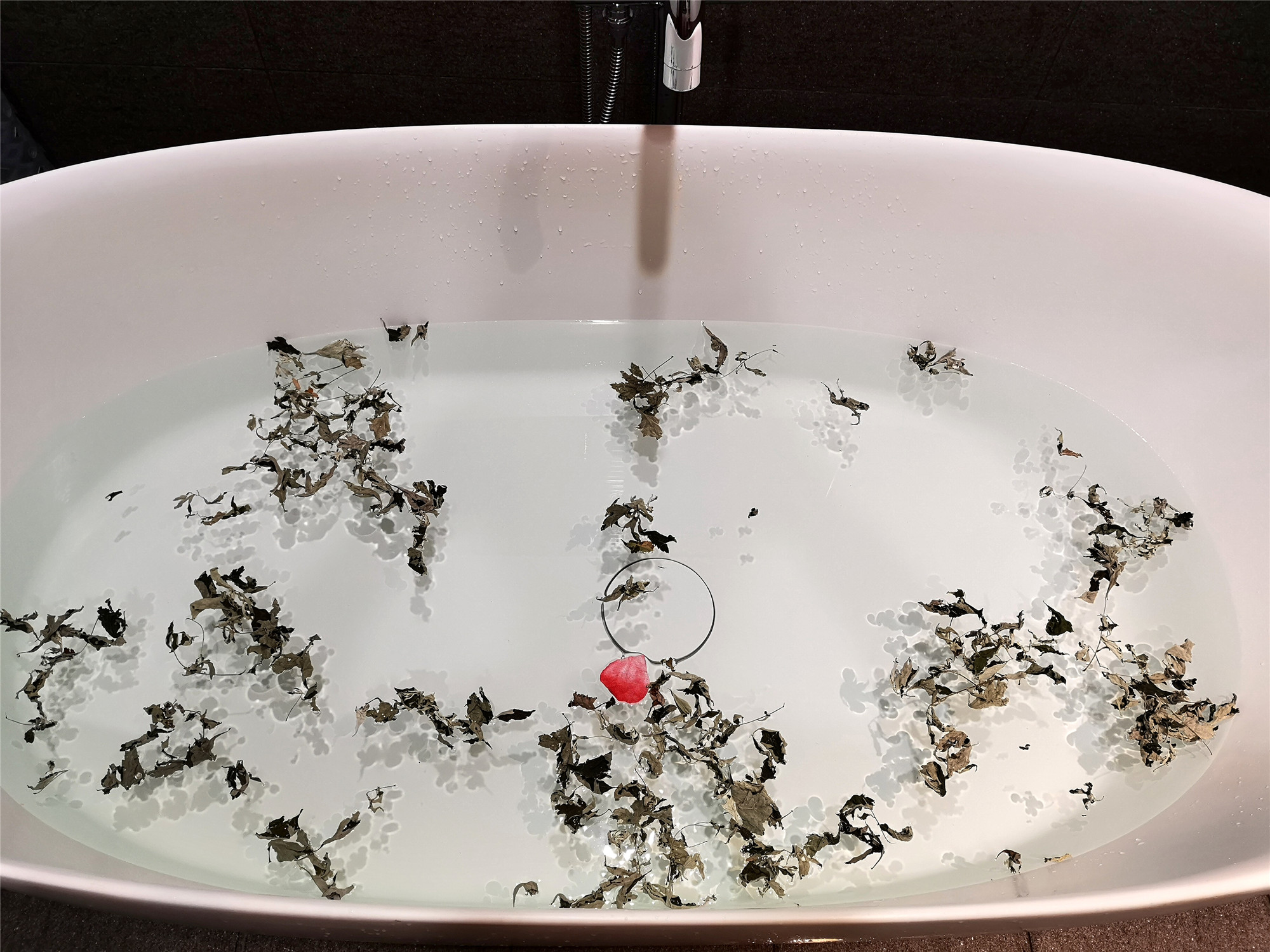浴室中有一个很大的浴缸是用来泡私汤温泉,还给准备了艾叶包。泡完之后浑身舒畅,皮肤滑爽,一天的疲劳烟消云散。洗护用品也是非常的好用,洗完头发很柔顺。