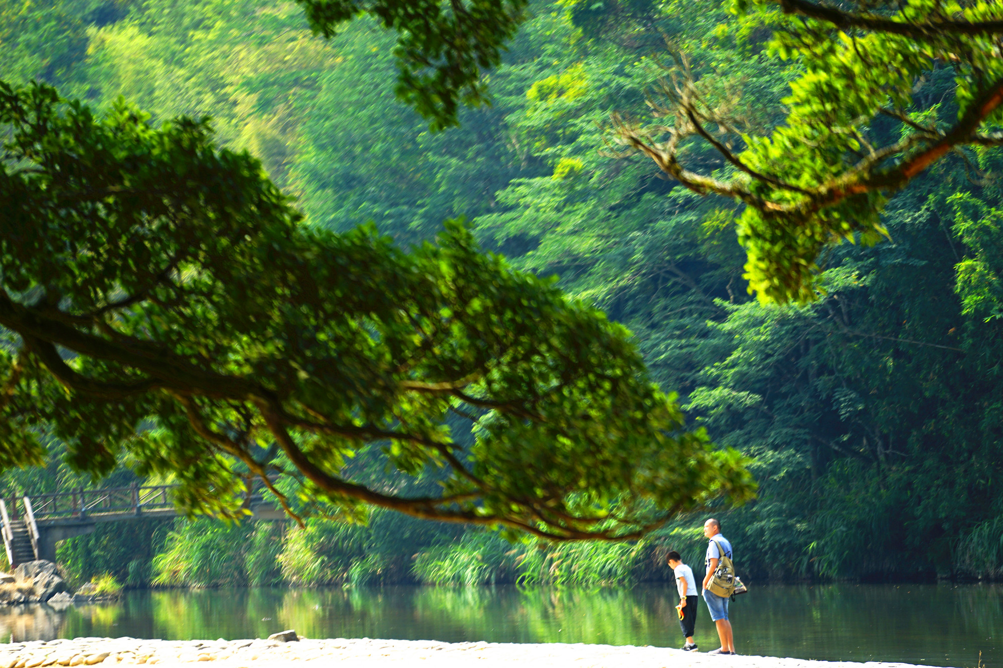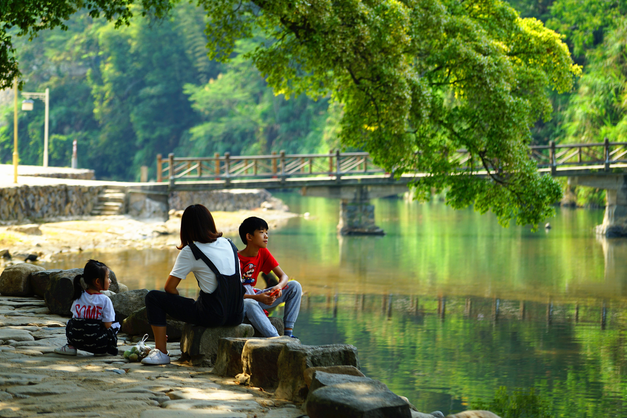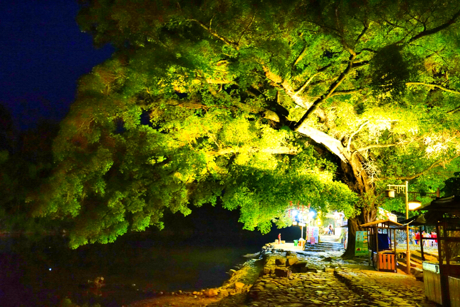 这些大榕树守望着云水谣的过去,今天与未来。今天的云水谣因为有了如此庞大的榕树才有了灵性,也正因为这些古树的存在,才会成为众多的电影的取景地。沿着河边一直走,一路上有很多的大榕树,有在树下喝茶的,有吃饭的,都是托了榕树的福,云水谣才会如此的吸引人。可是树下的摊位有点煞风景,还是要好好的规划整齐一点。而且这里的茶就更不用说了,带我们的司机师傅都提醒我不要买这里的茶叶,更别说喝茶了,茶叶质量差,价格还贵。