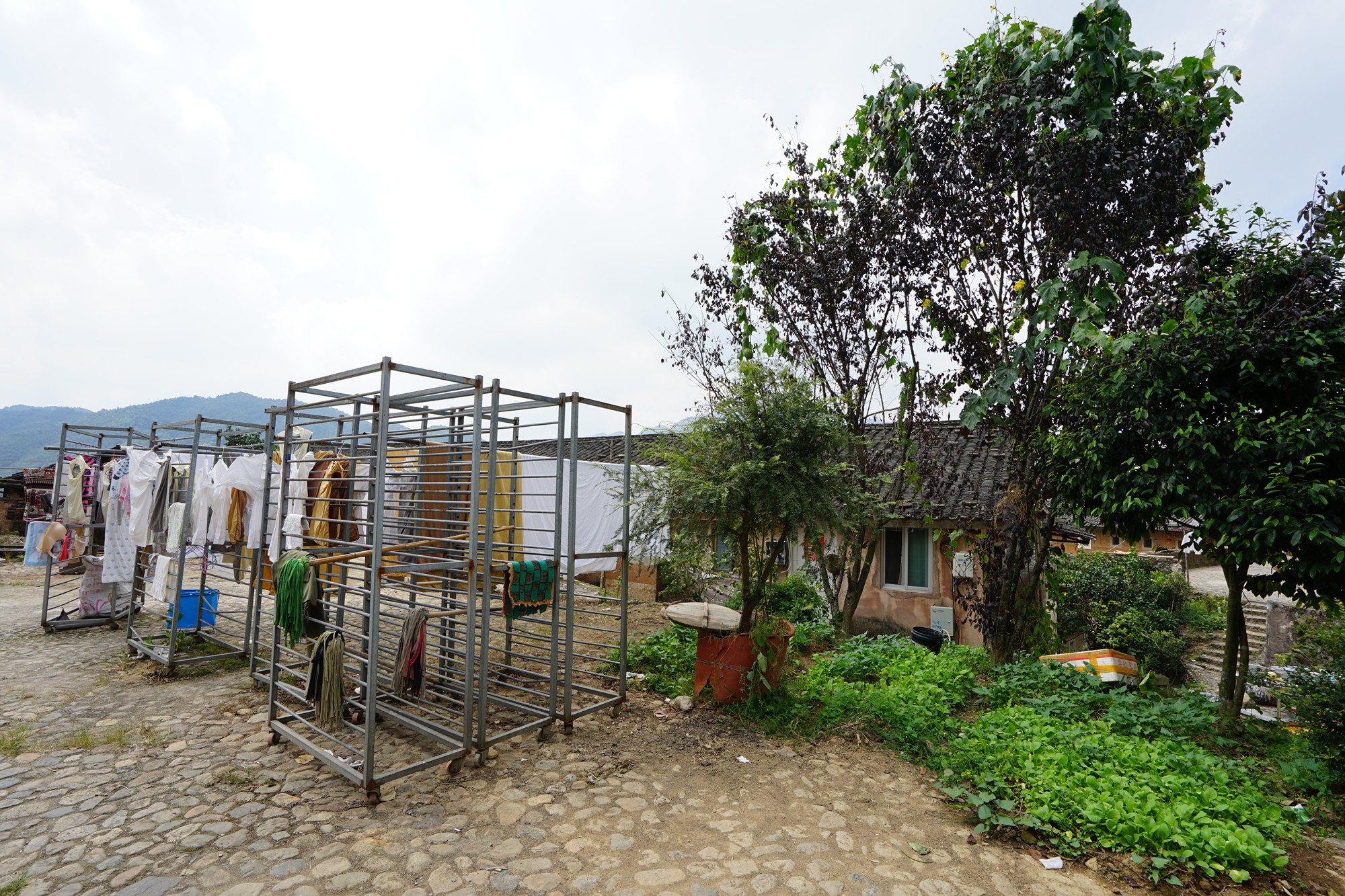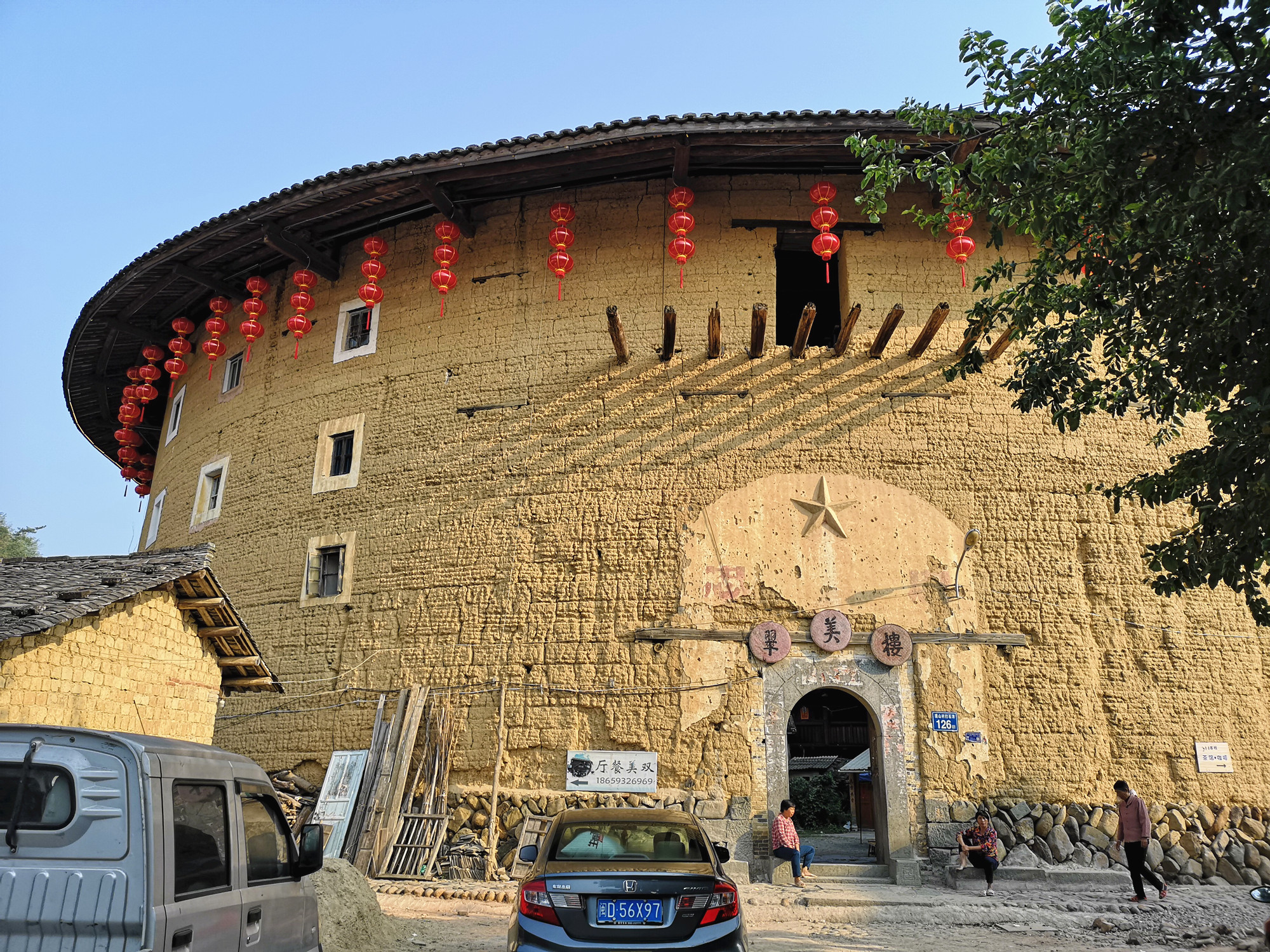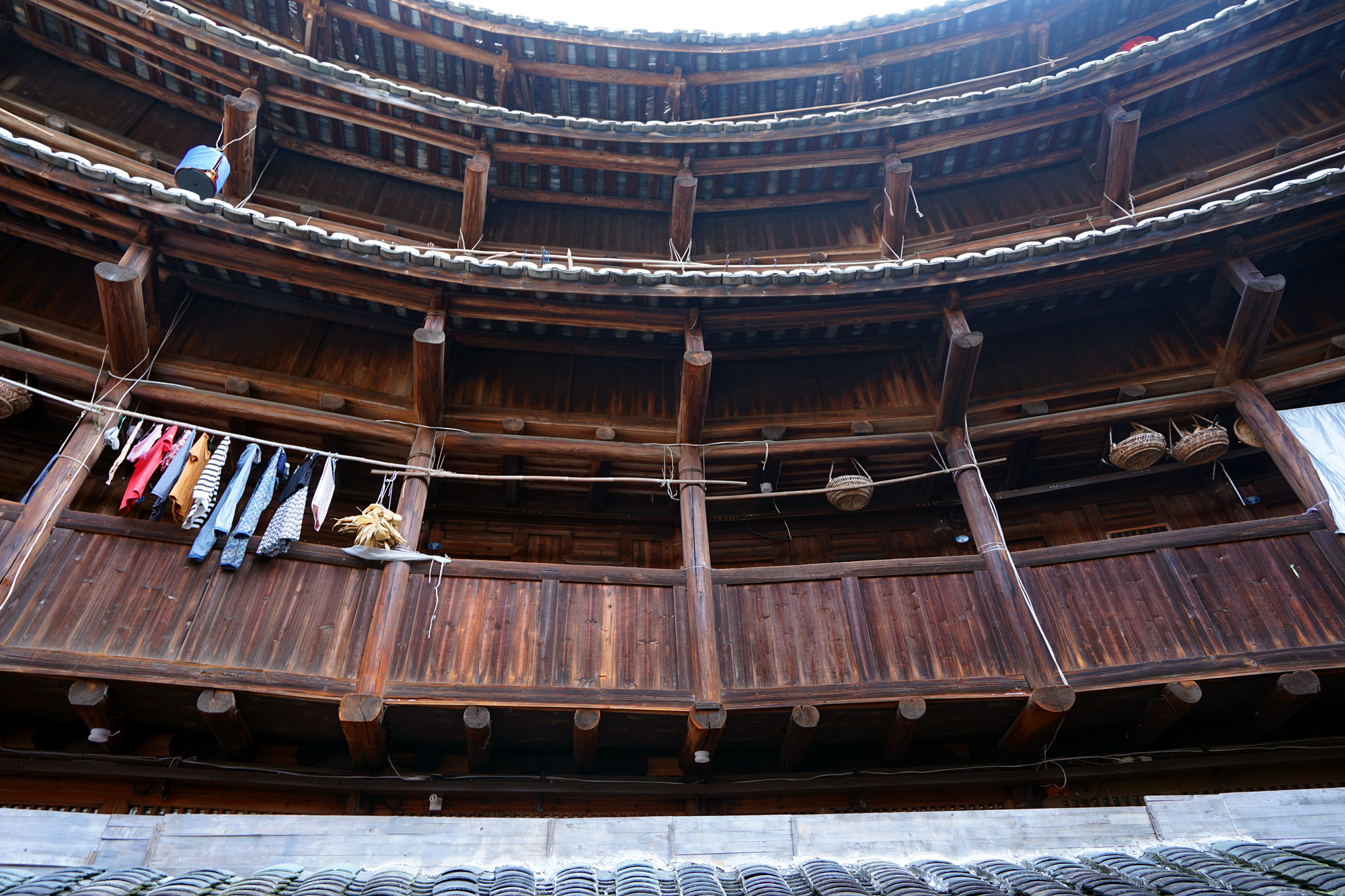 田螺坑土楼群最好的地方就是它的外观,尤其是站在观景台看到它的全景。由于是四个圆楼和一个方形土楼,被当地人称为“四菜一汤 ”。里面因为住了很多户人家,显得有些杂乱,小商品摆满了整个楼里面,有些嘈杂,楼上挂满了衣服,体验感不是很好。只进去了一个就不想再进去第二个。只好在外面看看,外面也是到处摆满了杂物,晾晒的被子随处可见。俨然一个村庄,不像是世界文化遗产所在地。总是说要有生活气息,个人认为还是要收拾的干净整洁才像个景区的样子,既要保留传统的东西又要有好的自然环境。
