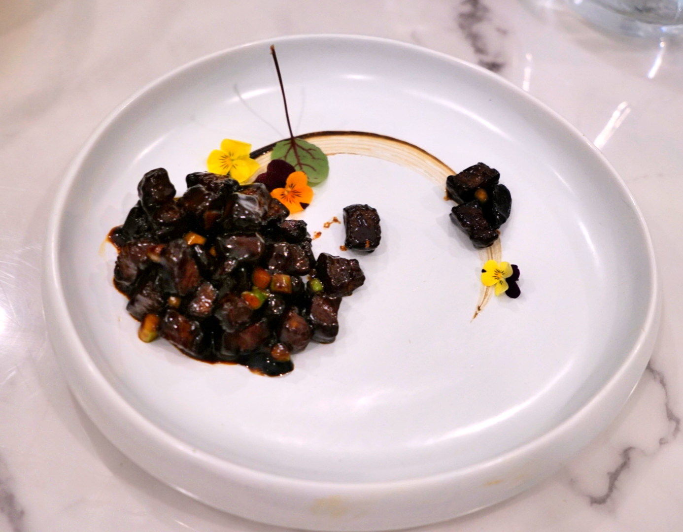 黑蒜牛菲粒,吃起来捎带甜口,牛肉入味而不柴,很受欢迎。