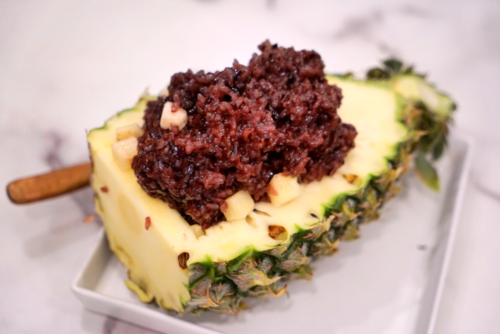 版纳百家菠萝饭,这个是黑糯米配上菠萝粒,软糯香甜我喜欢甜食,觉得这个还不错,吃了不少。