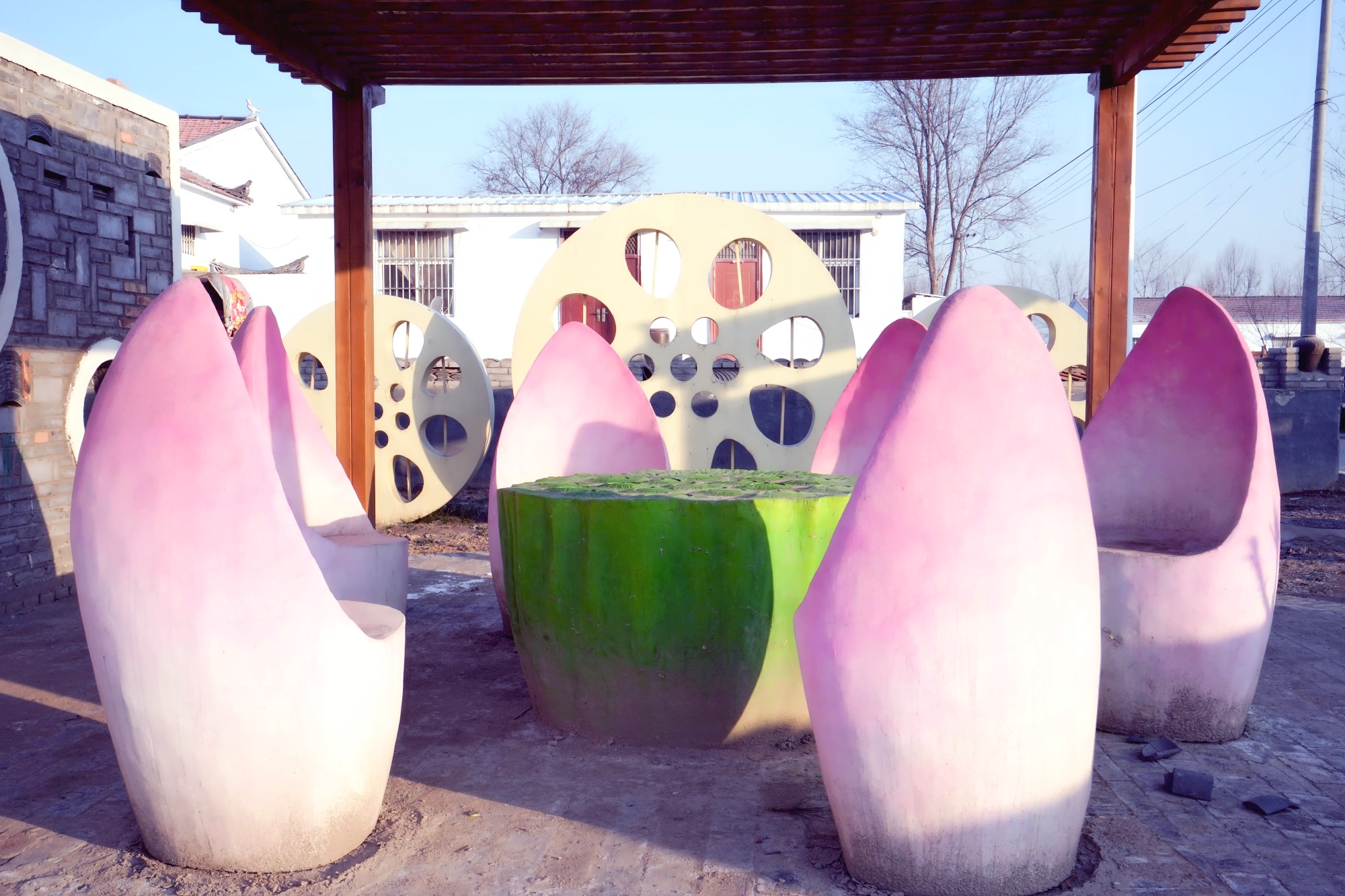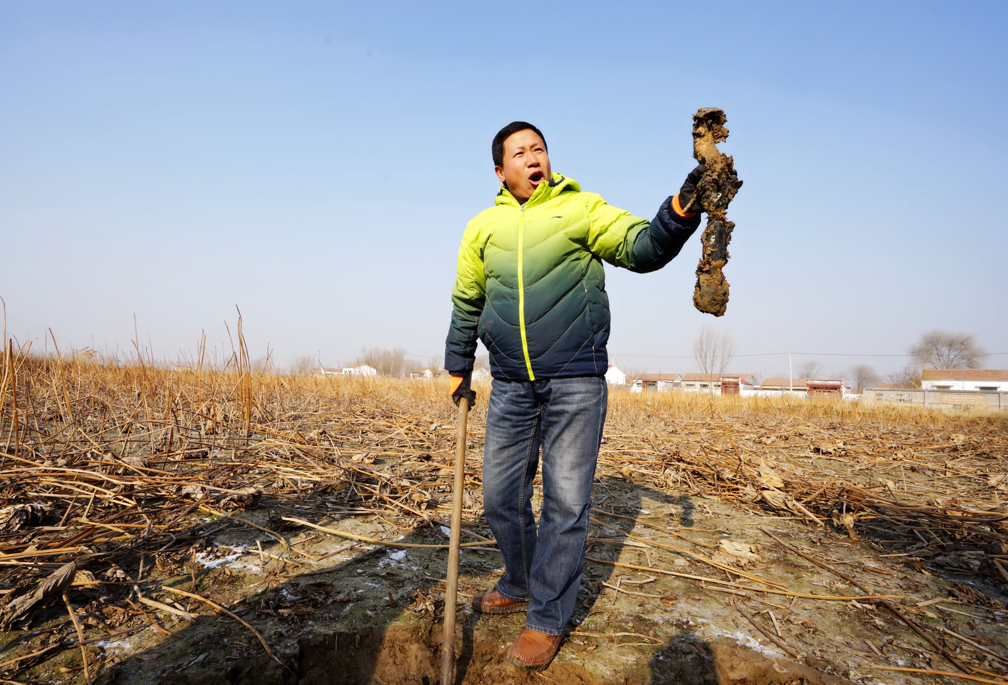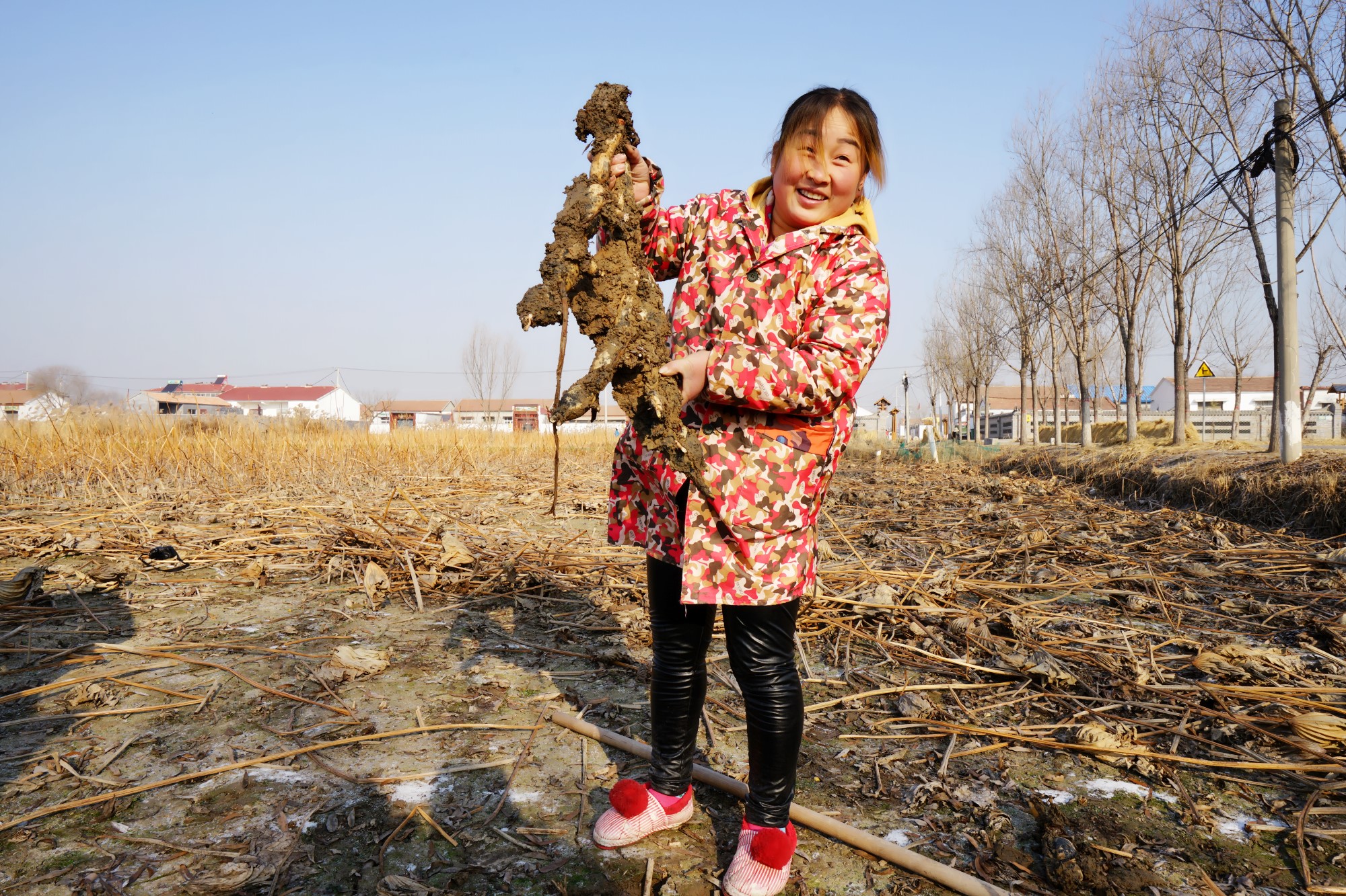 http://si1.go2yd.com/get-image/0SvKy6paedU村子里随处可见与荷花有关的涂鸦壁画,雕塑,就连这些歇脚的座椅都是莲花瓣的形状。冬季虽然没有荷花可看,可以到荷塘去体验挖藕。一说挖藕,大家都很兴奋。从来不知道挖藕是怎么回事,跟着这位大姐来到她家的荷塘,冬季的荷塘已经没有水,可以直接进去挖。挖藕可是有技巧的,不是随便乱挖。由于天冷,上面大概5公分的土层都是冻土,先挖掉这层土,就会看到藕的大概位置,然后顺着藕的长势方向一点点的挖,直到都挖出来。因为一根藕会有好多节,很长,不小心就会挖断哦!挖过之后才知道挖藕可是个技术活,村民们冬季基本都是靠挖藕赚点钱。挖藕工一天按一斤5毛钱,多劳多得。这位大姐的藕塘每年都会雇人来挖,刨去工人工钱,一斤藕也就赚一块钱,也真是不容易啊!她家在村子里还算比较富裕的人家,最起码有藕塘。