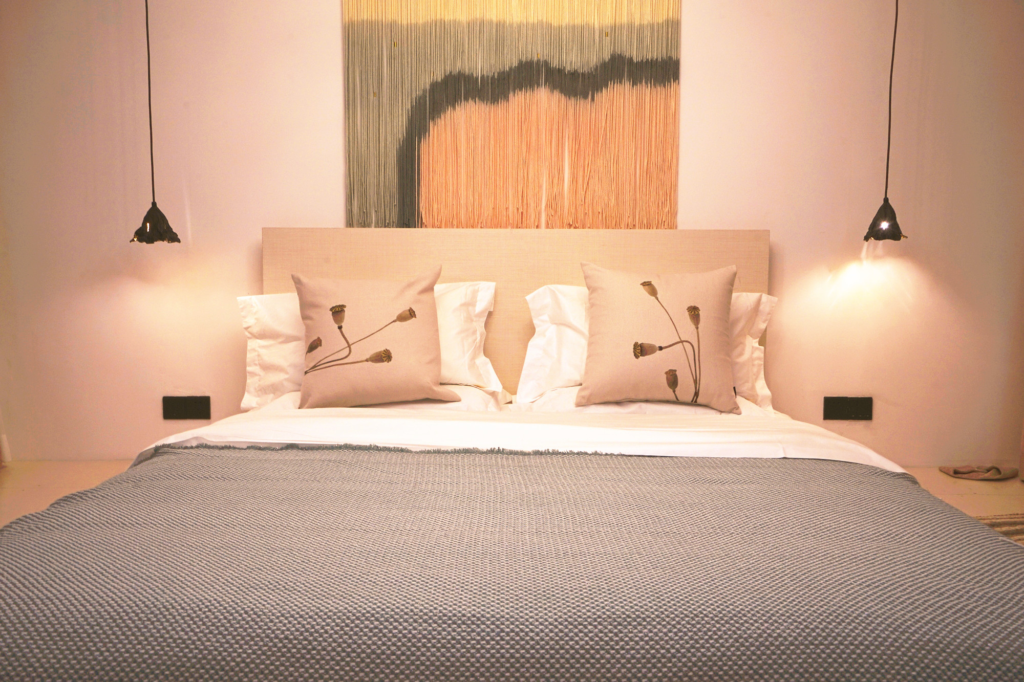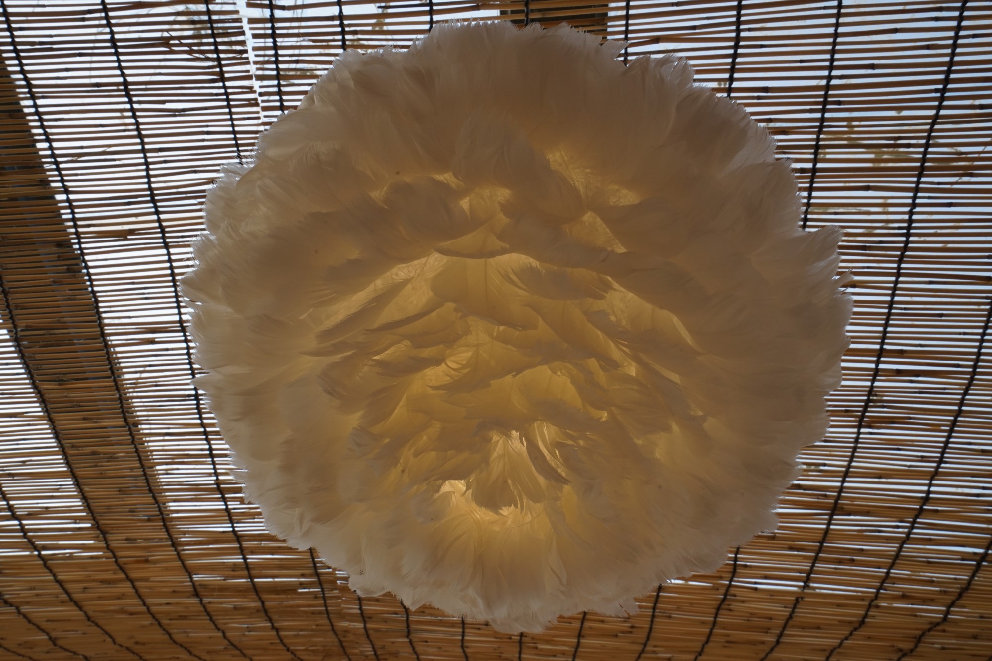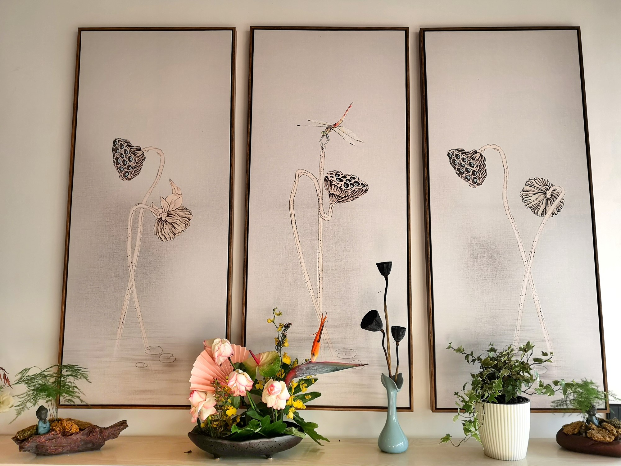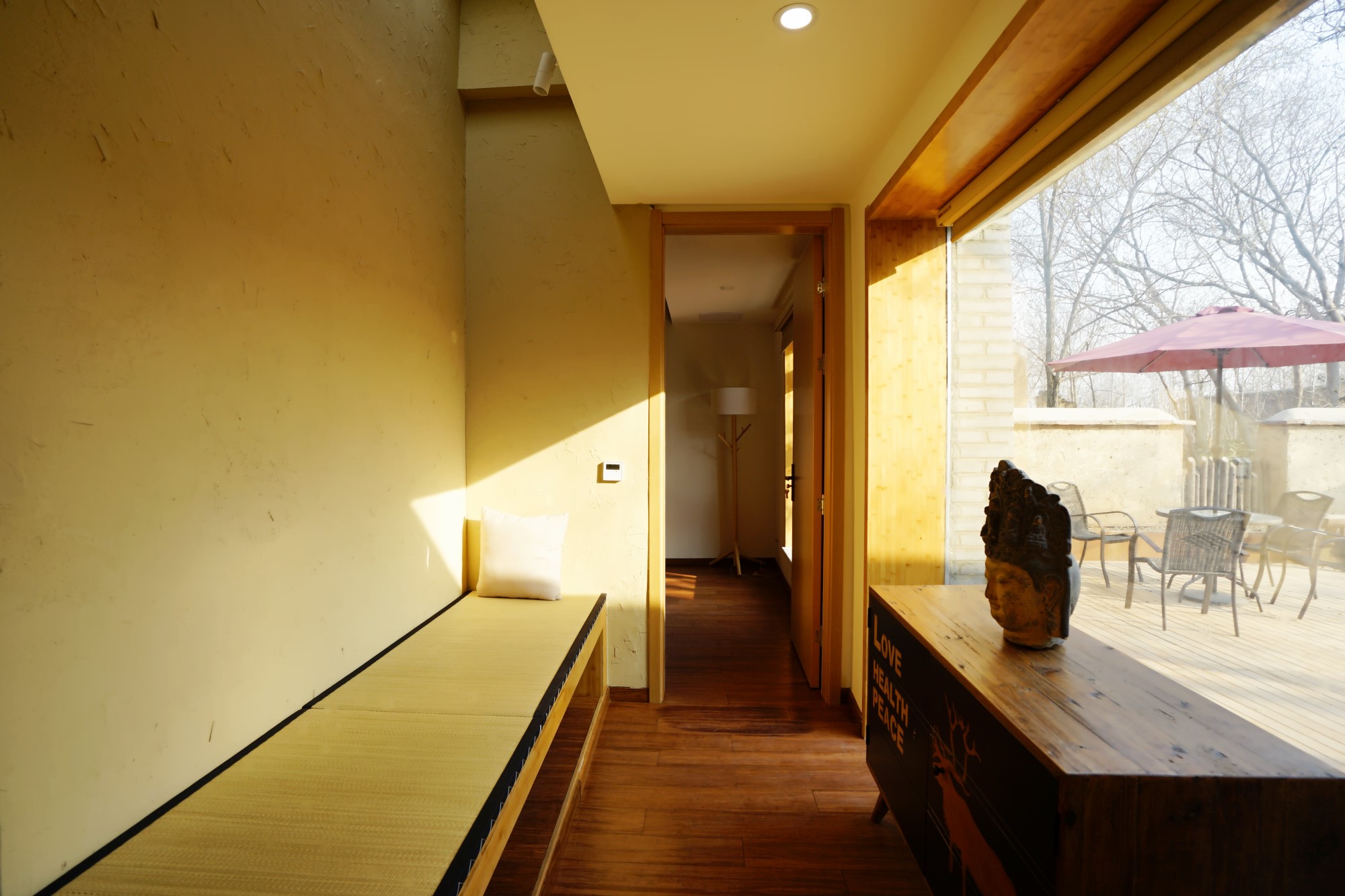 我们住的村宿都是独立的院落,每一个院子的大小都不一样。我住的是有两个房间,带一个大客厅,有庭院的小院。房间的格局非常棒,大床房。房间内的小摆件都与荷花息息相关,残荷的灯饰,绣着荷花的靠枕,墙壁上的挂件都是荷叶的形状。