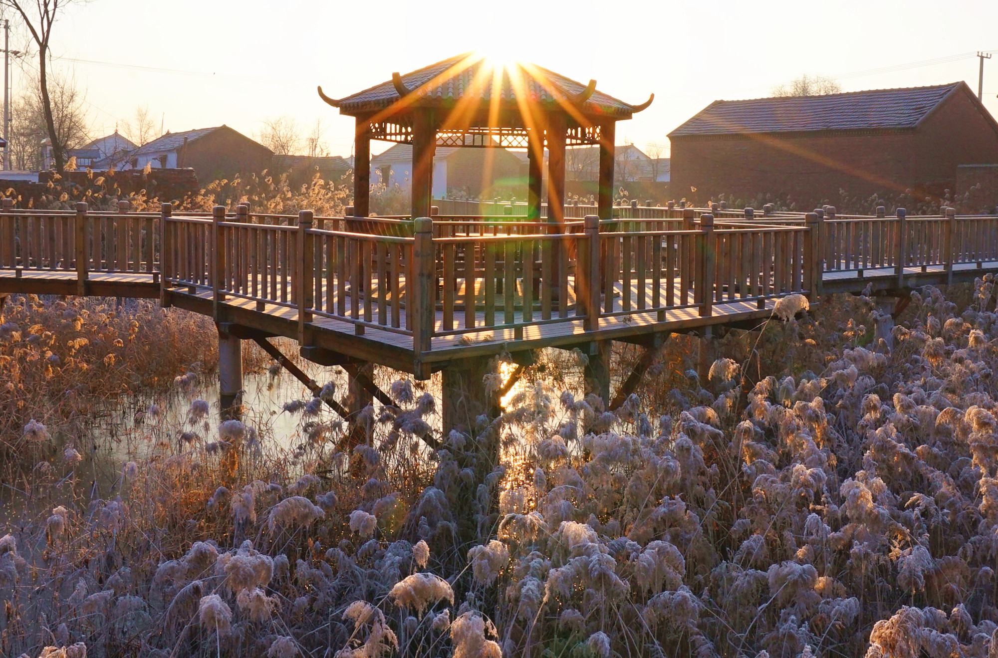 韩徐庄的清晨,晨曦中,村里的芦苇花结满了白白的霜花,村中的老人与他家的狼青在村头晒太阳,狼青很乖,寸步不离老人左右,有了狼青的陪伴,老人就会减少对儿女的思念。老人说,村子经过扶贫改造后,旧貌换新颜,干净漂亮,他们住在这里幸福的很!