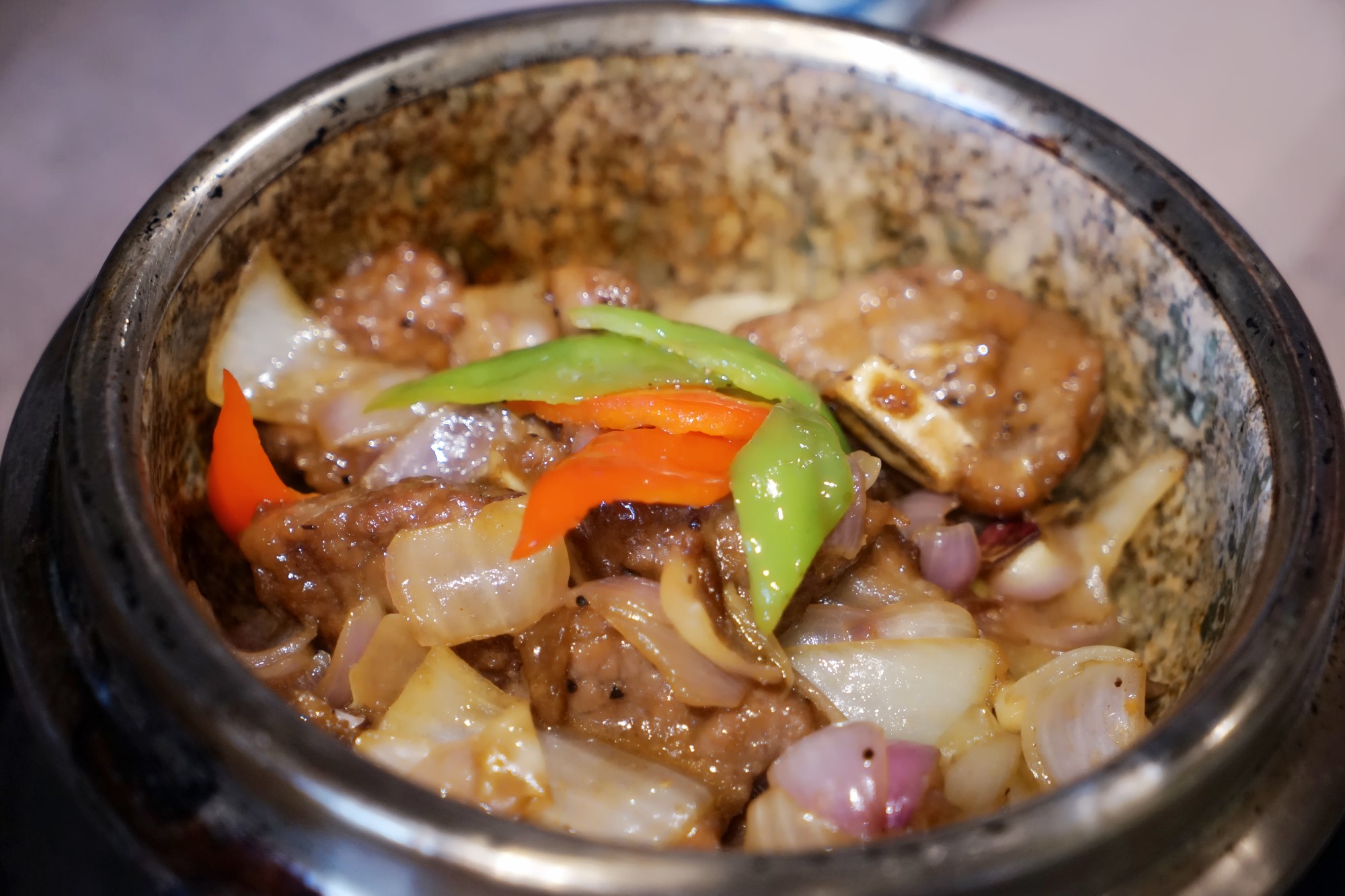 【石锅黑椒牛仔骨】精选澳洲进口带骨牛小排,辅以全球顶级大厨青睐的柬埔寨贡布胡椒。通过手工研磨制成新鲜粉末,保留当地特殊气候和富含矿物质的土壤赋予的独特风味,用中餐的烹饪方法调配成酱汁,让整块的牛仔骨肉都裹满浓郁的香味,典型的一道西餐中做的融合菜品。