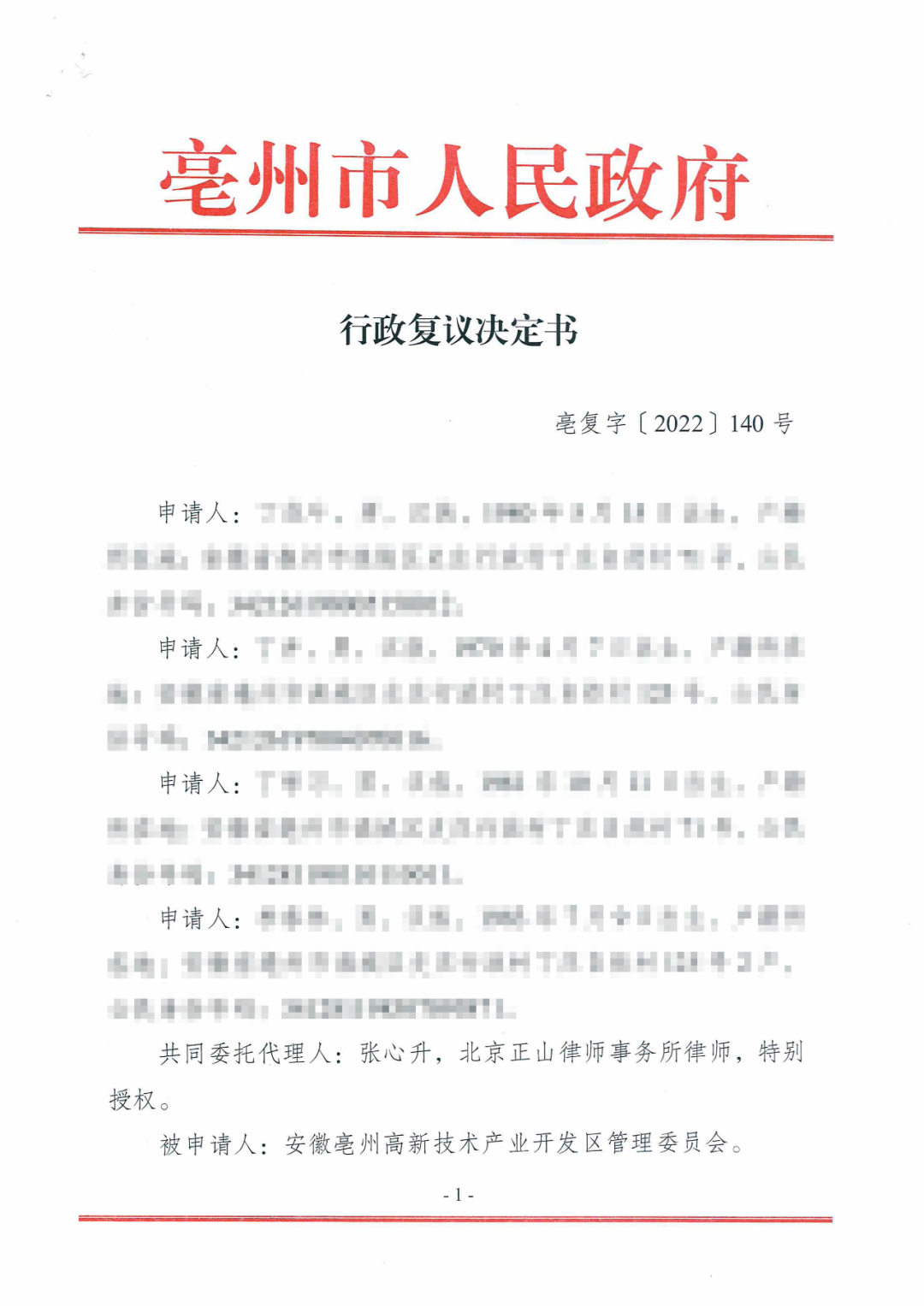 案号:亳复字[2022]140号
