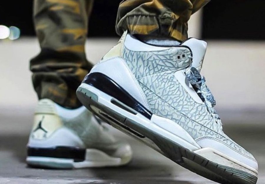 作为第一款采用反转爆裂设计的 Air Jordan 3 ,Air Jordan 3 “Flip”发售于 2007 年,该鞋与白水泥“white cement”的鞋身爆裂纹位置互换,鞋头及后跟采用白色荔枝皮包裹,鞋面则采用大面积爆裂纹覆盖,一经发售便成为了当年热议的话题。另外值得一提是,Jordan Brand 于 2007 年 3 月 24 日当天同时复刻发售了包括 Air Jordan 3 “Flip”在内的 3 款 AJ3 球鞋,另外两双是 Air Jordan 3 “Fire Red”以及女款的冰蓝配色 Air Jordan 3 Women’s “Harbor Blue”。想必当时的钱包君亚历山大。