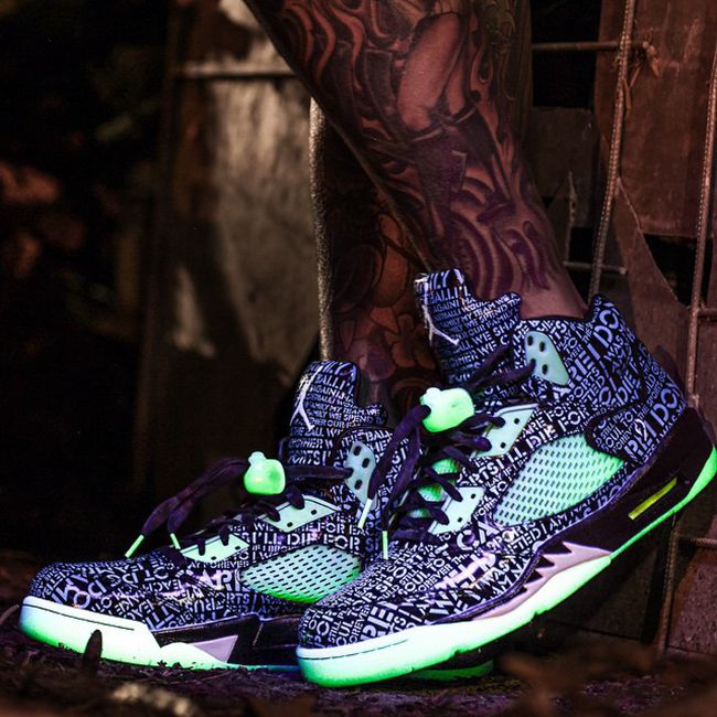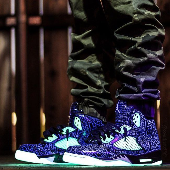 这双慈善系列的 Air Jordan 5 兼具镭射和夜光效果,不仅在白天穿着就会有炫酷的暗纹镭射,到了黑夜不仅外底等细节可以夜光,在附赠的紫外线笔照射下整双球鞋都会发出美轮美奂的光彩。这种感觉就好像小时候买了一块夜光表埋在被窝里怎么也玩不腻。