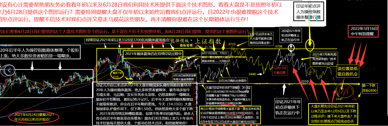 需要深层次了解市场把握机会、回避风险?请关注下面4月15日前瞻性重要点评———大盘长不看好,区间整理周末重磅利好有自救机会吗?几十年业内技术经验洛阳上官在这里再次郑重告诉大家,A股市场08年之后的A、B、C大熊市里大C浪熊市下跌远……没有结束。目前股市处于大熊市里C3浪3下跌走势。大盘目前在我们3月15、16日所点评的区间(3306至3125区间)整理结束后,C3浪3下跌将会下探2890附近阶段技术支撑。接下来C浪4错综复杂将运行23个月左右。再展开C5浪残酷杀跌。未来C5浪杀跌会不会失败?现在很难评论。提醒投资者不要被媒体莫须有利好、墙头草、马后炮、长期死多头,和主力配合政策维稳操控指数所忽悠。千万不要再往股市多送钱了。忍耐不住少少弄点钱。玩玩大盘下跌途中反弹个股行情。尤其提醒2021年初以来不听我们奉劝高位重仓套牢朋友。一定要把握大盘大C浪3浪3下跌途中局部震荡反弹机会调仓换股自救。否则高位套牢未来几年你几乎不可能解套。那究竟啥(遮羞布)原因导致A股市场十多年窝窝囊囊印证我们点评长期大熊市。并再次印证去年12月9日之后点评持续残酷杀跌呢?几十年业内技术经验洛阳上官再……次不厌其烦再次提醒:A股十多年以来长期基本面的产业链一直处于严重扭曲。十多年以来市场通胀、通缩持续升温居高不下。而A股基本面产业链长期持续严重扭曲冰冻三尺非一日之寒。无疑需要一个漫长“供给侧改革”修复【关注2021-06-11日、2022年3月18、16日收评!】过程。而供给侧改革推动资产证券化,抛售大量不良资产无疑将对市场构成长期巨大压力。关注下面2021年年初以来我们先知先觉所提供的大盘技术图形走势。