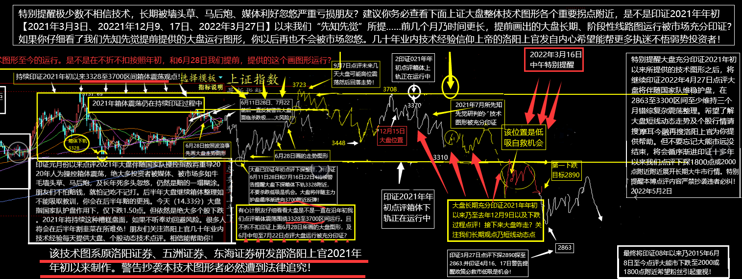 需要“打翻身仗”朋友务必认真阅读4月28日下面登高望远、前瞻性、连续剧重要点评————维稳救市将维持区间横盘3个月节日前后能弹多高?对此洛阳上官强烈提醒投资者必须保持良好心态。冷静看待A股市场整体基本面大盘长期、阶段性走势。以登高望远、战略性、前瞻性眼光客观分析市场。否则你必然被市场多如牛毛这些墙头草、马后炮、常年死多头、媒体莫须有利好,以及主力别有用心操控市场所迷惑。那么A股市场基本面处于什么状态?几十年业内技术经验信仰上帝的洛阳上官再次提醒。股市是国民经济晴雨表这个真理,谁也欺骗不了市场!那A股市场目前处于什么状态呢?简单通俗的说十多年前非正常持续大规模疯狂拉动内需,以至于各行业长……期产能过剩,导致产业链长期持续至今严重扭曲。所引发市场长期通胀、通缩并存持续升温。无疑对A股(经济)市场构成长期极大压力。而这种糟糕基本面持续升温所采取的“供给侧改革”推动资产证券化调控市场,长期抛售上市公司大量不良资产无疑对A股市场都是雪上加霜。试问A股市场怎么可能有牛市行情?加之国内疫情持续升温、俄乌战争以及欧美对我国加码经济制约。无疑这些不健康基本面每时每刻都在冲击A股(经济)市场。自然这个特色奇葩市场不会有长期投资者进入。所以A股市场长期走势处于人为操控量价背离走势。所以十多年以来乃2015年6月8日,及2021年年初以来我们始终坚决看空A股长期走势。希望深层次了解市场把握市场机会,回避市场风险这些朋友。建议务必关注2021年6月11日,2022年3月16、18、27日收评为你指点迷津。另外特别提醒我们每天点评文章下面所提供的大盘技术图形走势。以及点评文章下面截图前期点评重要内容,肯定对你了解把握市场长期、阶段性走势有极大前瞻性帮助。希望有心计投资者一定要重视认真阅读。