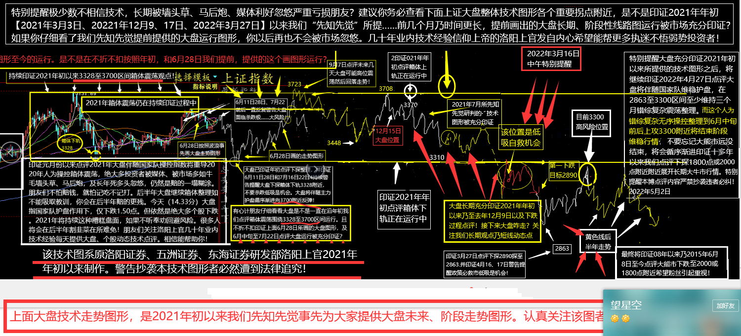 需要“打翻身仗”朋友务必认真阅读4月28日下面登高望远、前瞻性、连续剧重要点评————维稳救市将维持区间横盘3个月节日前后能弹多高?对此洛阳上官强烈提醒投资者必须保持良好心态。冷静看待A股市场整体基本面大盘长期、阶段性走势。以登高望远、战略性、前瞻性眼光客观分析市场。否则你必然被市场多如牛毛这些墙头草、马后炮、常年死多头、媒体莫须有利好,以及主力别有用心操控市场所迷惑。那么A股市场基本面处于什么状态?几十年业内技术经验信仰上帝的洛阳上官再次提醒。股市是国民经济晴雨表这个真理,谁也欺骗不了市场!那A股市场目前处于什么状态呢?简单通俗的说十多年前非正常持续大规模疯狂拉动内需,以至于各行业长……期产能过剩,导致产业链长期持续至今严重扭曲。所引发市场长期通胀、通缩并存持续升温。无疑对A股(经济)市场构成长期极大压力。而这种糟糕基本面持续升温所采取的“供给侧改革”推动资产证券化调控市场,长期抛售上市公司大量不良资产无疑对A股市场都是雪上加霜。试问A股市场怎么可能有牛市行情?加之国内疫情持续升温、俄乌战争以及欧美对我国加码经济制约。无疑这些不健康基本面每时每刻都在冲击A股(经济)市场。自然这个特色奇葩市场不会有长期投资者进入。所以A股市场长期走势处于人为操控量价背离走势。所以十多年以来乃2015年6月8日,及2021年年初以来我们始终坚决看空A股长期走势。希望深层次了解市场把握市场机会,回避市场风险这些朋友。建议务必关注2021年6月11日,2022年3月16、18、27日收评为你指点迷津。另外特别提醒我们每天点评文章下面所提供的大盘技术图形走势。以及点评文章下面截图前期点评重要内容,肯定对你了解把握市场长期、阶段性走势有极大前瞻性帮助。希望有心计投资者一定要重视认真阅读。