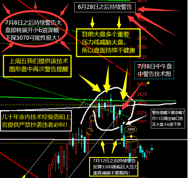 那大盘长期、阶段性印证我们几十年业内技术经验前瞻性、连续剧点评。且正在印证3月份以来我们点评大盘局部震荡下探2890(动态更正2896)逼迫政策维稳救市上攻3330(动态更正3424人为操控指数掩盖资金出逃)附近受阻回落,形成岛形反转展开小b浪深幅下探3070。试问7月25日这周3228能否止跌企稳?对此洛阳上官仍坚持6月28日以来点评观点。千万不要追高。即便主力操控指数维持大盘在3228至3306区间震荡也是(涨指数)逢高减磅机会。实在忍不住可少量低吸弹性不错、交易活跃、市场热门、升幅不大这类股快进快出。否则多看少动尽量控制追涨杀跌。毕竟市场处于主力无节奏操指数控高风险状态。那A股市场怨何长期“窝窝囊囊”走势坑骗无数投资者?希望在市场更好生存把握有限赚钱机会朋友。建议忙里偷闲务必关注今年4月28日、6月30(之后文章下面有粘贴)登高望远、前瞻性、连续剧点评了解A股市场长期、阶段性走势为你排忧解难。希望简简单单了解市场未来、乃后半年以及近期走势朋友,务必关注下面长期粘贴2021年以来所提供的“先知先觉”大盘运行图形为你提供帮助。(以上点评 仅供参考)