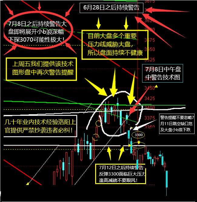 需要了解未来一段时间大盘走势?详情关注长期、阶段性乃至上周末前后收盘点评观点:小b浪再次展开杀跌下周有没出逃机会?其实该话题今年三月份以来我们一直以登高望远、前瞻性、连……续剧模式不厌其烦反复点评提醒大家。其市场“不折不扣”印证去年底3731我们持续警告大盘杀跌将危及特大箱体下轨3306下探2890(动态更正2863)附近。将逼迫政策维稳救市展开3731下跌第2浪a、b、c调整。我们的先知先觉、登高望远、前瞻性、连续剧点评说得非常明白清楚。3731下跌第2浪a、b、c调整,其A浪将上攻3330(人为操控动态更正3424)附近受阻。然后展开小b浪深幅下探3070(目前正在进行中)附近,而且我们持续警告小b浪杀跌下探3070附近将对绝大多个股再次构成强力杀伤。才能再次逼迫政策维稳救市促使主力操控再次拉升指数展开小c浪上攻3300附近。而且在6月15日直至6月28日主力装神弄鬼、虚张声势操控拉升指数过程中我们一直反复警告。千万不要忽略主力“量价背离”操控指数是别有用心、不怀好意掩盖场内资金大规模出逃。而目前回头看看大盘长期、阶段性乃至局部运行印证我们点评,不听我们奉劝恶意攻击我们这些不知好歹投资者目前是什么结果?毫无疑问几乎都是赔的一塌糊涂。那未来一段时间咋操作?请耐住寂寞认真阅读下面登高望远、前瞻性、连续剧点评为你提供帮助!