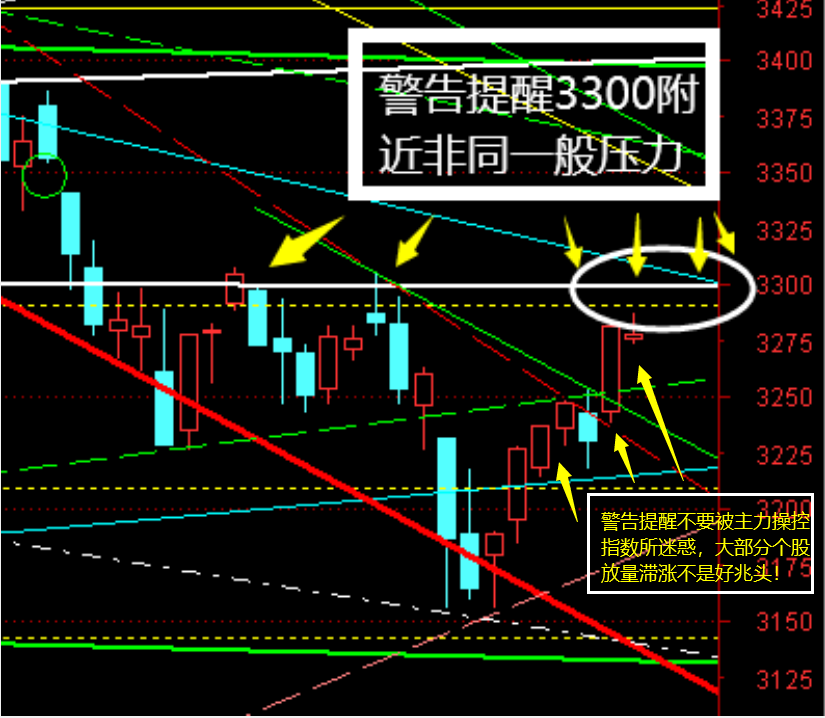 怨何主力这两天暴炒指数个股放量滞涨小心下周再杀跌?该说的话周四收评说得很清楚。再啰嗦都是多余的话。有心计朋友认真阅读周四“登高望远”前瞻性点评。相信能为你提供先知先觉帮助。那下周乃周初大盘咋走?警告提醒大盘面临周四点评的3306附近重磅压力,下周大盘继续伴随主力维稳护盘展开循序渐进小b浪深幅下探可能极大。操作策略千万不要追高。详情关注本周四收评:为什么点评主力维稳疯控权重股群体暴涨,谨防大盘再冲击3300附近再杀跌?谈论这个话题我们必须稍安勿躁切合实际立足三个方面来讨论这个重要话题。首先我们投资者必须认真观察周四主力操控拉升指数过程中的“量价关系”能否满足大盘进一步上升动力,必须观察主力操控市场过程中绝大多个股的“量价关系”能否支持大盘继续上升?否则那些墙头草股评家大肆唱多只能自欺欺人。而周四盘面表现究竟如何?毫无疑问早盘集合竞价盘面凸显又……是主力装神弄鬼操控所有高价股、巨无霸,以及操控所有重量级板块配合维稳“虚张声势”闪电操控指数。而绝……大多个股全天自始至终都处于放量滞涨原地踏步走或冲高回落走势。主力全天操控拉升指数收盘上涨1.60%情况下。而主力操控拉升的金融指数、超大盘指数、券商、保险、航空……分别就暴涨5.03%、2.20%、5.51%、4.10%、3.00%。而且这些重量级板块个股的成交量明显不足。充分显示是主力主力重仓所造成指数虚张声势上升。试问这种及不健康盘面能持续大盘继续上升吗?