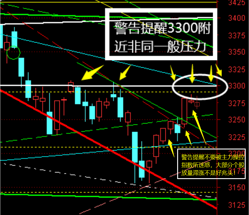 我们为什么点评系好安全带别被主力操控指数诱在山顶上?闲话少说在大盘技术仍受制于3300点附近重磅历史压力几乎不可能改变之前、在主力“虚张声势”操控指数盘面仍处于“量价背离”个股放量滞涨资金仍在出逃情况下。我们不会改变长期、阶段乃近日点评观点。特别提醒目前的糟糕技术和盘面随时都会迫使大盘再次下跌。提醒粉丝稍安勿躁千万不要跟风追高。希望了解详情请继续关注本上周四收评:为什么点评主力维稳疯控权重股群体暴涨,谨防大盘再冲击3300附近再杀跌?谈论这个话题我们必须稍安勿躁切合实际立足三个方面来讨论这个重要话题。首先我们投资者必须认真观察周四主力操控拉升指数过程中的“量价关系”能否满足大盘进一步上升动力,必须观察主力操控市场过程中绝大多个股的“量价关系”能否支持大盘继续上升?否则那些墙头草股评家大肆唱多只能自欺欺人。而周四盘面表现究竟如何?毫无疑问早盘集合竞价盘面凸显又……是主力装神弄鬼操控所有高价股、巨无霸,以及操控所有重量级板块配合维稳“虚张声势”闪电操控指数。而绝……大多个股全天自始至终都处于放量滞涨原地踏步走或冲高回落走势。主力全天操控拉升指数收盘上涨1.60%情况下。而主力操控拉升的金融指数、超大盘指数、券商、保险、航空……分别就暴涨5.03%、2.20%、5.51%、4.10%、3.00%。而且这些重量级板块个股的成交量明显不足。充分显示是主力主力重仓所造成指数虚张声势上升。试问这种及不健康盘面能持续大盘继续上升吗?