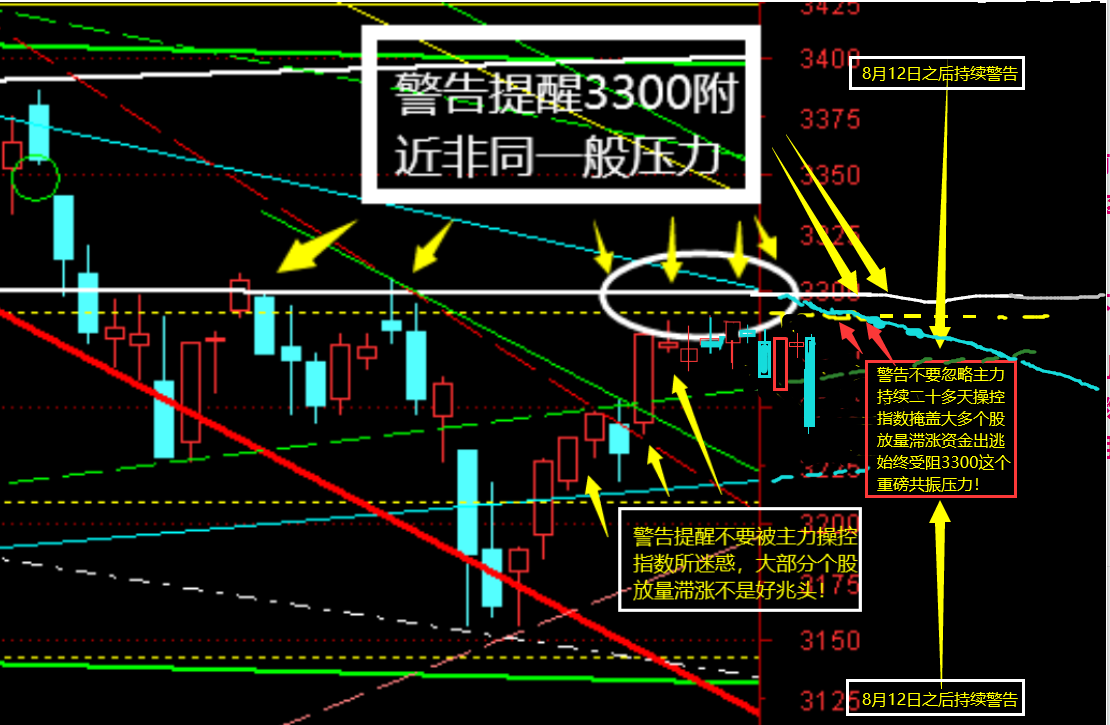 而我们A股市场整体阶段性运行技术形态看。有关这个话题我们在本博无数次谈论自己观点。A股大盘自始至终都没有改变08年之后多年大水漫灌所导致的长期大熊市A、B、C调整走势。更没有改变2015年6月8日之后我们持续点评的长期大C浪大熊市人为维稳操控“错综复杂”下跌走势。当然目前的市场状况也没有改变2021年年初之后我们持续点评的特大箱体下轨3306遭毁灭性破坏之后所展开C3浪长期下跌走势仍在运行。虽然周四(8月11日)主力不惜代价、大动干戈、虚张声势操控指数破坏了6月28日前后我们持续点评的3723点下跌2浪小a、b、c的小b浪,更小级别3小子浪下跌。但根本改变不了大盘处于长期熊市A、B、C大调整。更改变不了大盘始终处于C3浪长期熊市下跌。特别提醒即便主力操控基于A股基本面没有大的变化、基于大盘长期阶段性技术根本不支持持续上升、基于主力操控市场始终处于量价背离绝大多个股放量滞涨场内资金仍在出逃。我们提醒大盘很难向上有效突破去年形成的特大箱体下轨3306附近巨大压力。长话短说千万不要被那些墙头草评论忽悠盲目追高。我们仍建议重仓弱势个股无量反弹把握机会减磅。防范其大盘受阻3306附近再次回落(小b浪下探3060附近。才能在年前再次逼迫政策救市促使主力再次拉升指数展开小c浪上攻3300附近。详情关注每天前瞻性动态点评)冲击大多个股杀跌。(以上探讨 仅供参考)
