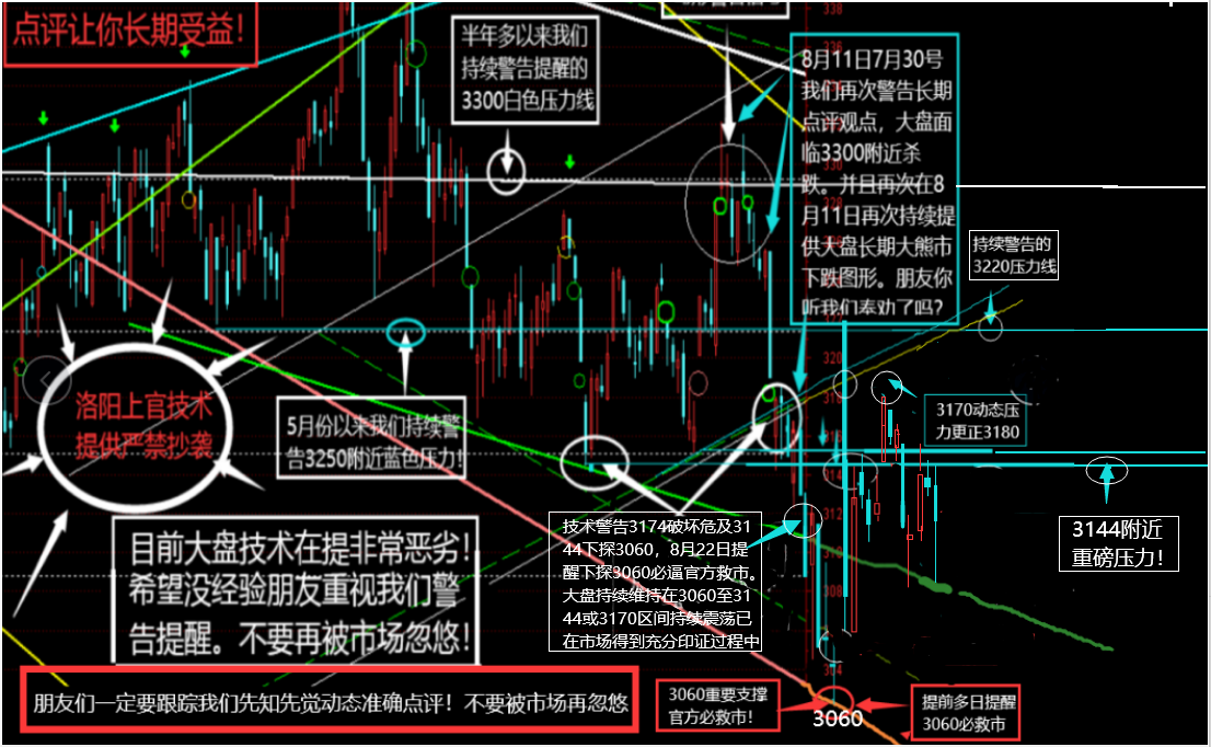 维稳救市局部震荡能探多深?痛定思痛大家不妨回头看看大盘长期,尤其今年春节之后,以及近日大盘的无节奏运行是不是在“不折不扣”沿着我们先知先觉提前好多天点评在运行?听我们奉劝者不仅回避了大盘下跌冲击个股杀跌风险。而且按照我们点评在低位参与我们个股文章牛逼股操作是不是都是赚钱好机会?如果不听奉劝被煤体天天忽悠利好,被那些一会涨一会跌墙头草评论牵着鼻子走。朋友你是不是亏损一塌糊涂?朋友如再不听奉劝被割韭菜不过是时间问题不相信走着瞧?洛阳上官再次提醒不听奉劝者赶快清醒清醒吧?!那大盘长期尤其近期始终在印证8月22日之后我们点评,周四乃至近日大盘再探能探多深,才能再次逼迫政才再次维稳救市产生弱势反弹?简单重复8月22日以来点评观点。大盘冲高3144或3170受阻回落局部震荡至少需要23个或33个交易日才能完成【a、b、c】阶段性维稳救市。特别提醒小b浪回落下探3085或3060才能再次逼迫政才维稳救市展开小c向上弱势反弹。小c浪弱势反弹高度不排除伴随主力【大型基金】配合政才操控拉升指数再次诱多上攻3144或3162附近完成小c浪反弹。大盘才能伴随主力维稳护盘展开新一轮弱势循序渐进下跌。特别提醒大盘在持续印证至少23或33个交易日运行过程中,将仍是一个政才配合主力无节奏操控维稳错综复杂局部震荡无节奏行情。研判市场短线操作难度极大。煤体忽悠利好墙头草一会涨一会跌评论市场将会再次兴风作浪忽悠投资者追涨杀跌。投资者一定要提高警惕。对此我们再次提醒投资者千万不要被市场忽悠追涨杀跌。即便短线操作也必须要在大盘回落一定幅度基础上进行适度短线操作。看不懂市场不要轻举妄动。毕竟目前市场状况个别股票都是主力机构虚张声势自救昙花一现拉升资金出逃状态。跟风操作十有八九都是高位套牢。希望得到帮助朋友,千万不要远离我们每天针对大盘收盘、直播间动态点评。相信信仰上帝的洛阳上官几十年业内技术经验能够为你提供先知先觉帮助。【以上点评 仅供参考】