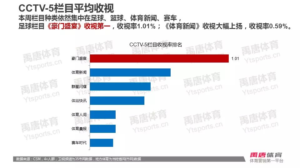 栏目方面,受欧洲杯高关注度影响,足球栏目《豪门盛宴》继续霸占榜单,收视率1.01%,上升26.3%;