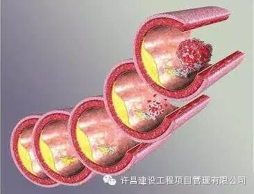 第二个原因,如果血脂肪、胆固醇太高,造成血液的粘稠度太高,就象长江的上游,水流速度非常快,水非常清澈,没有垃圾,下面没有沙子。到了下游,水流速度变慢,整个水面上漂着一大堆的垃圾,底下都是沙子。同样的,当血液的粘稠度增加以后,血流的速度变慢,血管上就会沉积许多附着物,越来越多,这时候血流的速度越来越慢。