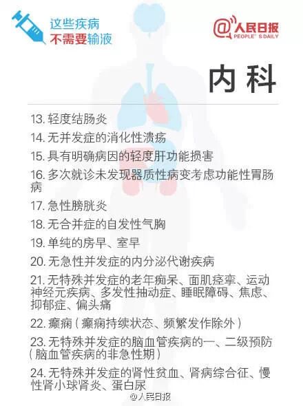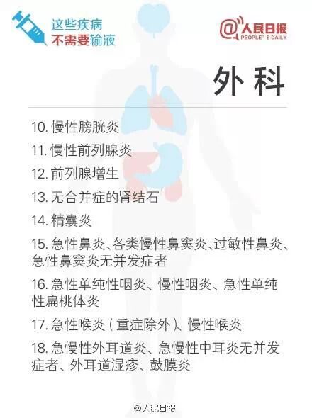 卫计委公布了“53种不需要输液”的疾病清单,清单一公布,立刻在网上热传。记者发现,其中包括常见病多发病,一些外科、妇科炎症以及小儿的疾病,都明确可以不需要使用抗生素输液。记者昨日请南京专家解读这份清单,专家表示有些“发炎”不是细菌感染,使用抗生素无效反而会导致滥用。