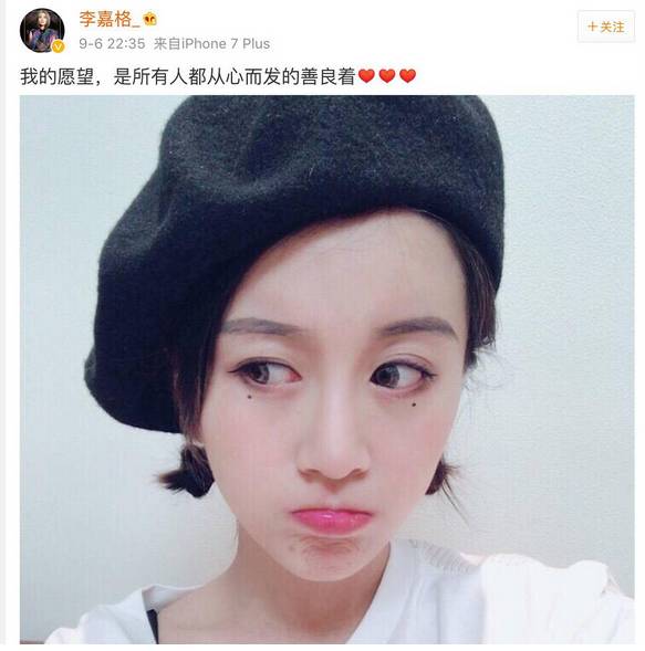 李嘉格也发了微博: