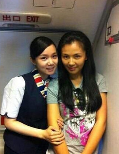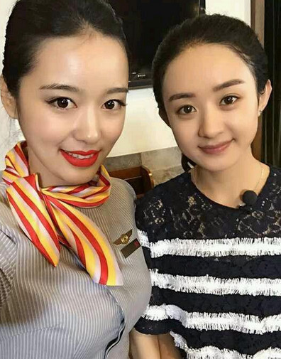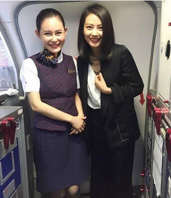 马伊琍和空姐的合影,素颜挺美的。旁边空姐怎么那么像王珞丹