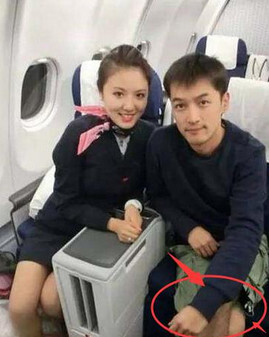 胡歌和空姐的合影,那时的胡歌是不是像一个懵懂的高中生,有没注意到他腿上的毛呢?