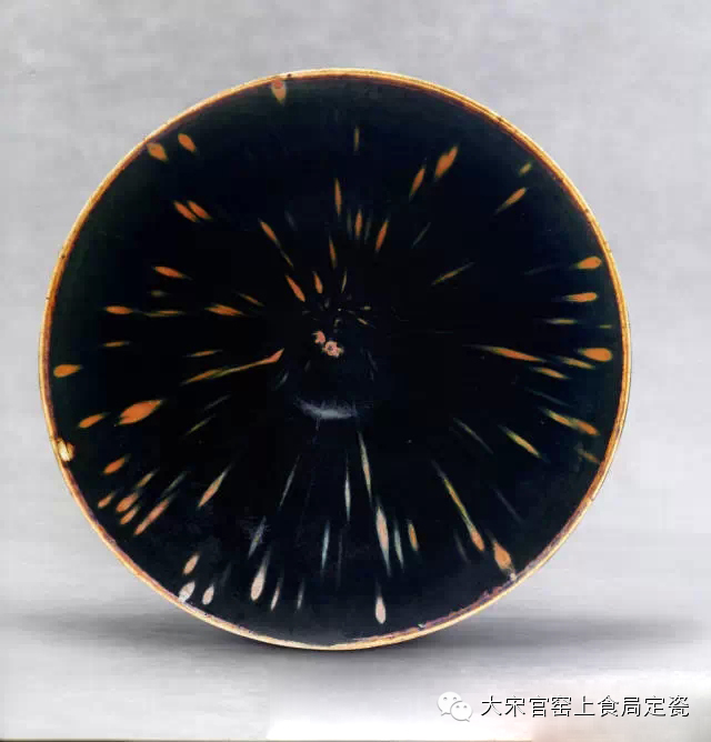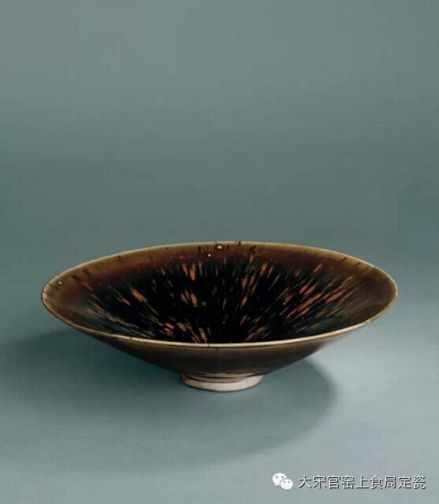 这件黑定斗笠盏虽然是件残件,但也颇为难得。釉光一流,就像镜面一样。鹧鸪斑的发色和放射状效果也是恰到好处。整件器物的艺术效果与“临宇山人”的斗笠盏不相上下,很好的体现了宋代艺术的惊人成就。