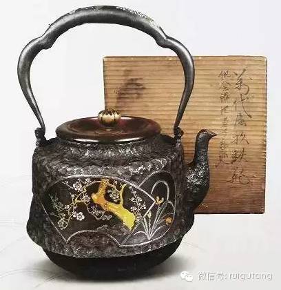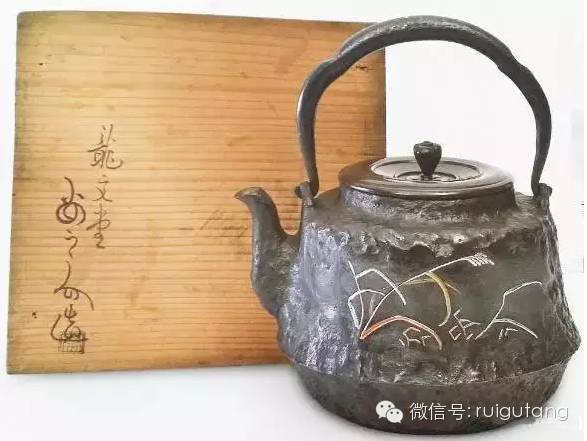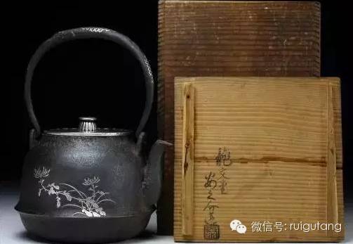 在江户时期铁壶初期形成时,亦有一些老壶由于原箱的遗失,壶身和壶盖上无任何落款,但其工艺、造型、材质很是精美典雅、古朴大方也不失为收藏佳品。