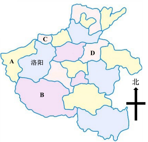 43.洛阳在唐代被称为“东都”,但在《清明上河图》的创作时期,它却是“西京河南府”的所在地。参照右图,请推断,《清明上河图》描绘的城市大致在以下哪个地方?