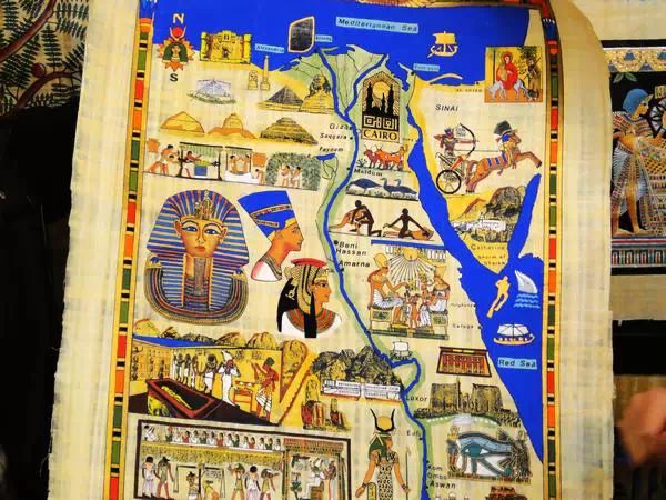 如果不知道从埃及买什么手信回家各种散发,花花告诉你,纸莎草画绝对是第一选择!纸草画的纸张是由纸莎草制作的,被称为莎草纸或纸草纸。古埃及人很早就学会了用纸莎草做纸。莎草纸经过编织与粘接,可以变得很大,埃及出土的莎草纸中,最长的有50多米。古埃及人将他们的思想、工作、生活、宗教活动等画在泥板、石壁和陶片上,再依样搬到莎草纸上,就成了纸草画。