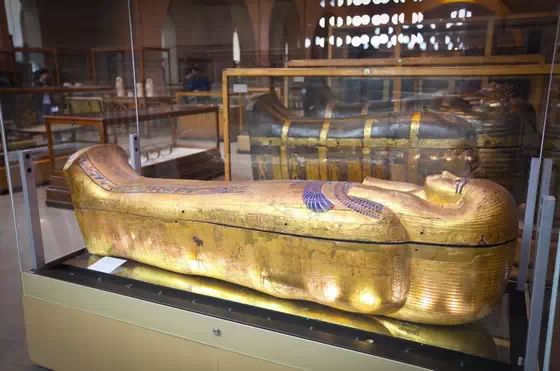 著名的图坦卡蒙黄金面具,发现在帝王谷,这个年轻的皇帝木乃伊依然在南部卢克索的帝王谷。作为一个没有功绩的帝王,他的无作为让他墓地得以长治久安的得以完美保存,因为人们根本就不记得他也不会打他的主意。他的陪葬肯定不是最奢侈的,但是已经足以让后世瞠目结舌,各种金灿灿的棺木及陪葬品,让人惊叹,古代埃及人绝对是外星人!!