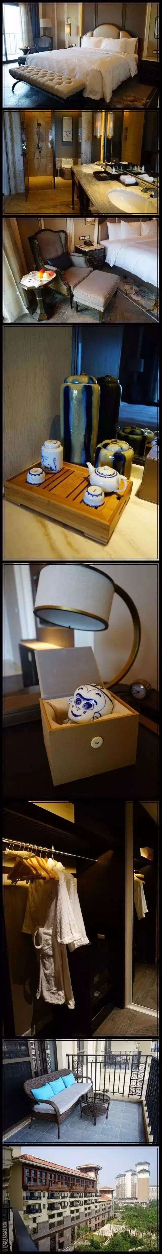 进入房间,整体米色风格的设计,显得低调、奢华又典雅。床垫是精心挑选过的,“睡感”很好,对于认床的花粉,大概也能一觉到天明。迷你吧上有一套小小的茶具,办公桌上摆放着酒店送的青花瓷猴子摆件。作为一家度假型酒店,又坐落在九龙湖畔,私家阳台简直是标配,晒着太阳吹着风,一个不小心便消磨了大半天。