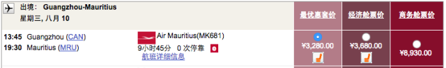 从昨天起,毛里求斯航空广州直航毛里求斯正式开通,每周一班,单程空中飞行时间只需9小时45分,由空客A340客机执飞。