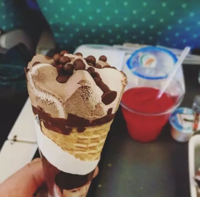 ▼飞机餐吃完了,还给你一个可爱多甜筒,敲满足