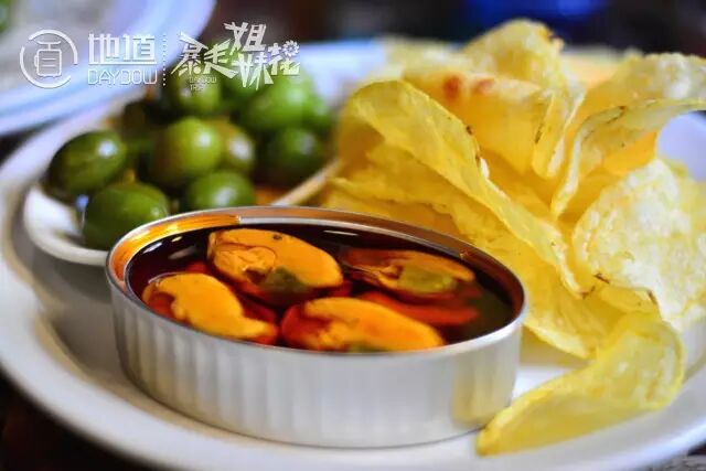 红油浸泡着的厚实的贝肉(不要问我是什么贝,回答不出~傲娇脸~),加上脆口的土豆片,酸咸的橄榄,完全不会觉得腥!!好吃!