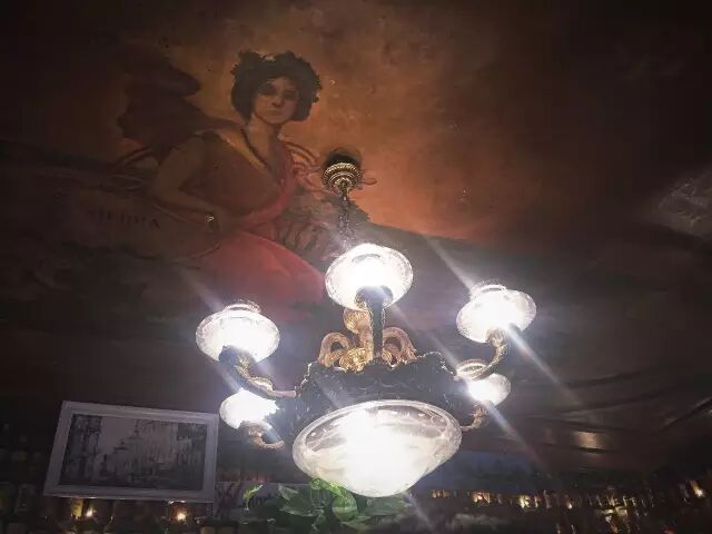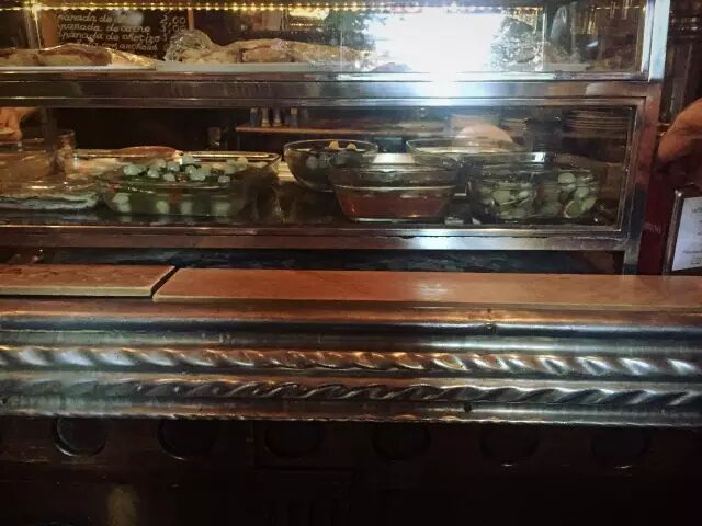 这家小馆快要有一百年历史,装修保持了旧时传统,放置tapas的餐台全是锡制造,这种金属方便散热制冷,在没有冰箱的年代,起到了天然冰箱的作用。大家都站在餐台前,喝酒聊天,没人觉得没位置是件麻烦事。