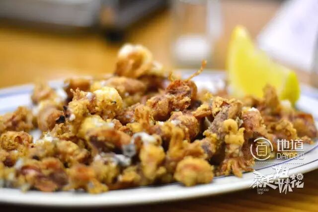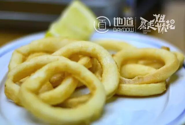 当我觉得鱿鱼圈已经赢了的时候,发现我还是太天真,因为接下来的鱿鱼仔,才是个中翘楚啊!!!小小的鱿鱼仔,外面裹上面粉鸡蛋,整个大火热油煎炸,外脆内嫩,一咬还可以爆浆!!真是要哭了要哭了!