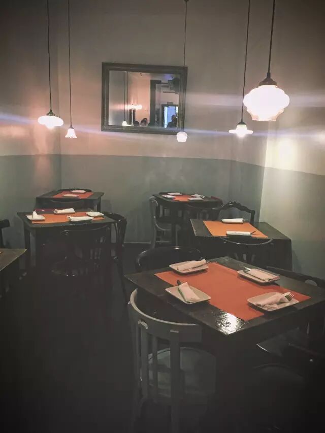 很可爱的店名,因为这家店前面的路口有马德里第一个STOP交通标志,从而得名,小小的店实木风格,显得很old