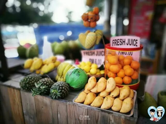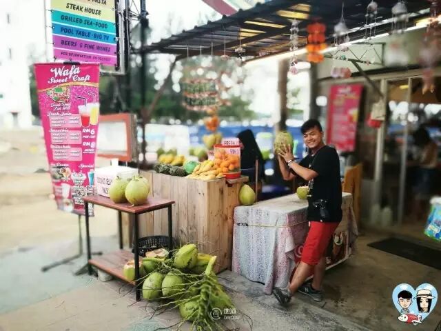 兰卡威随处都可以看到卖椰子的摊位,价格大约在5马币~7马币。同时也会卖其它的一些新鲜果汁。