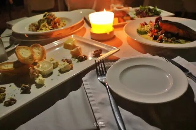 上半身优雅隆重的吃着法国菜,下面却赤脚踩着细腻的沙子,这种感觉超级棒!