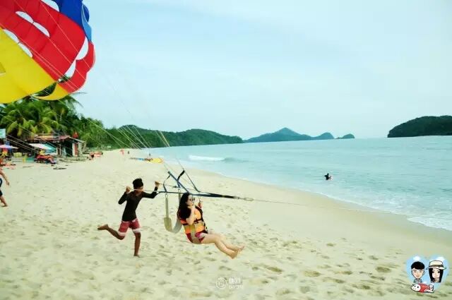 在兰卡威的珍南海滩上,善良酱完成了她的愿望清单里一个刺激的项目——高空飞行。