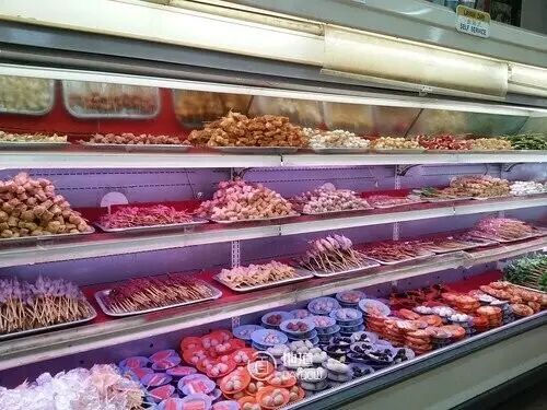 这里是自助形式,你到冰柜自己挑选要吃的食材就好了,不同的竹签和碟子代表不同的价格。