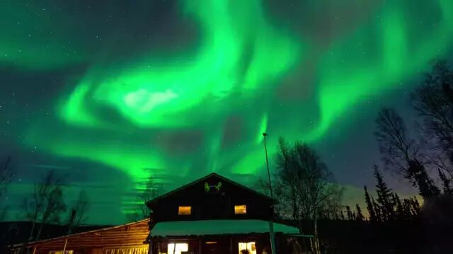 在阿拉斯加,春秋两季观看极光各有优劣。由于冬天日照时间只有两三小时,天寒地冻,除了极光没什么可玩,首先排除。春天降水少,日夜多是晴天,几乎可以保证看到极光,但路面还是积雪,部分公路不开放。而秋季,户外活动丰富,小飞机、皮划艇、冰川徒步都还没停止,但夏天雨季留下的小尾巴可能有所影响。