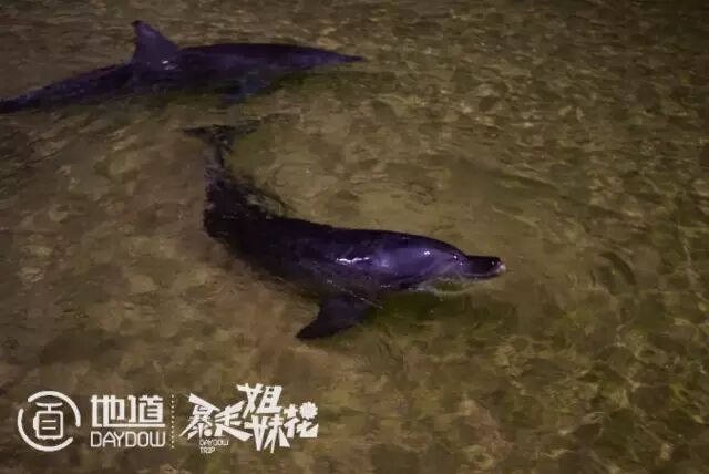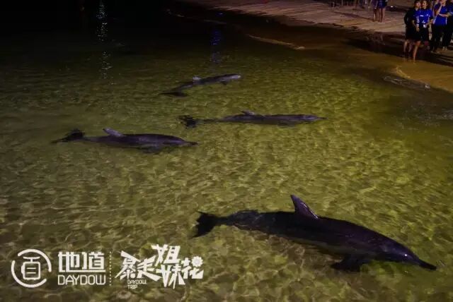 入夜后,夕阳走了,海豚家族就来了。海豚岛之所以被这样命名,除了全貌酷似一只跃起的海豚外,还因为每天傍晚,都有一个海豚家族前往岸边玩耍。这些海豚每一只都会有自己的名字,自己的性格,度假村还给它们设立了“班表”,每天谁“上班”谁“旷工”,都有记录。由于海豚都是野生也非圈养,所以,指示牌上也有明确指示不许骚扰影响他们。