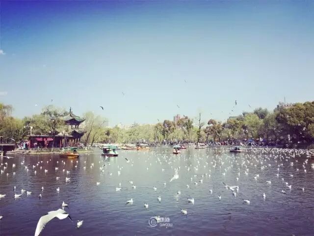 红嘴鸥每年都会来翠湖过冬,冬天过去,他们也会飞走。