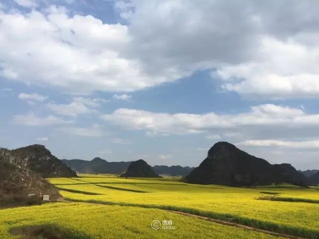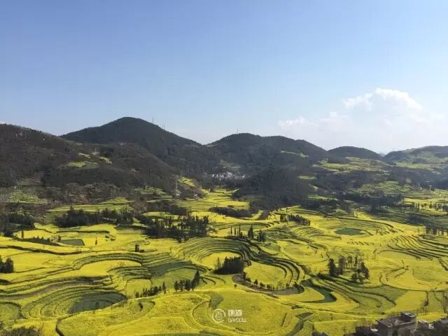 罗平是我国的油菜生产基地县,每年2、3月份,20万亩油菜花在罗平坝子竞相争放,放眼望去,一片金黄。