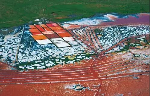 这个盐湖的特别之处在于,它看上去竟是红色的!这里生产大青盐,远远眺望,一格格的盐田就仿佛画家手中的调色盘一般动人。